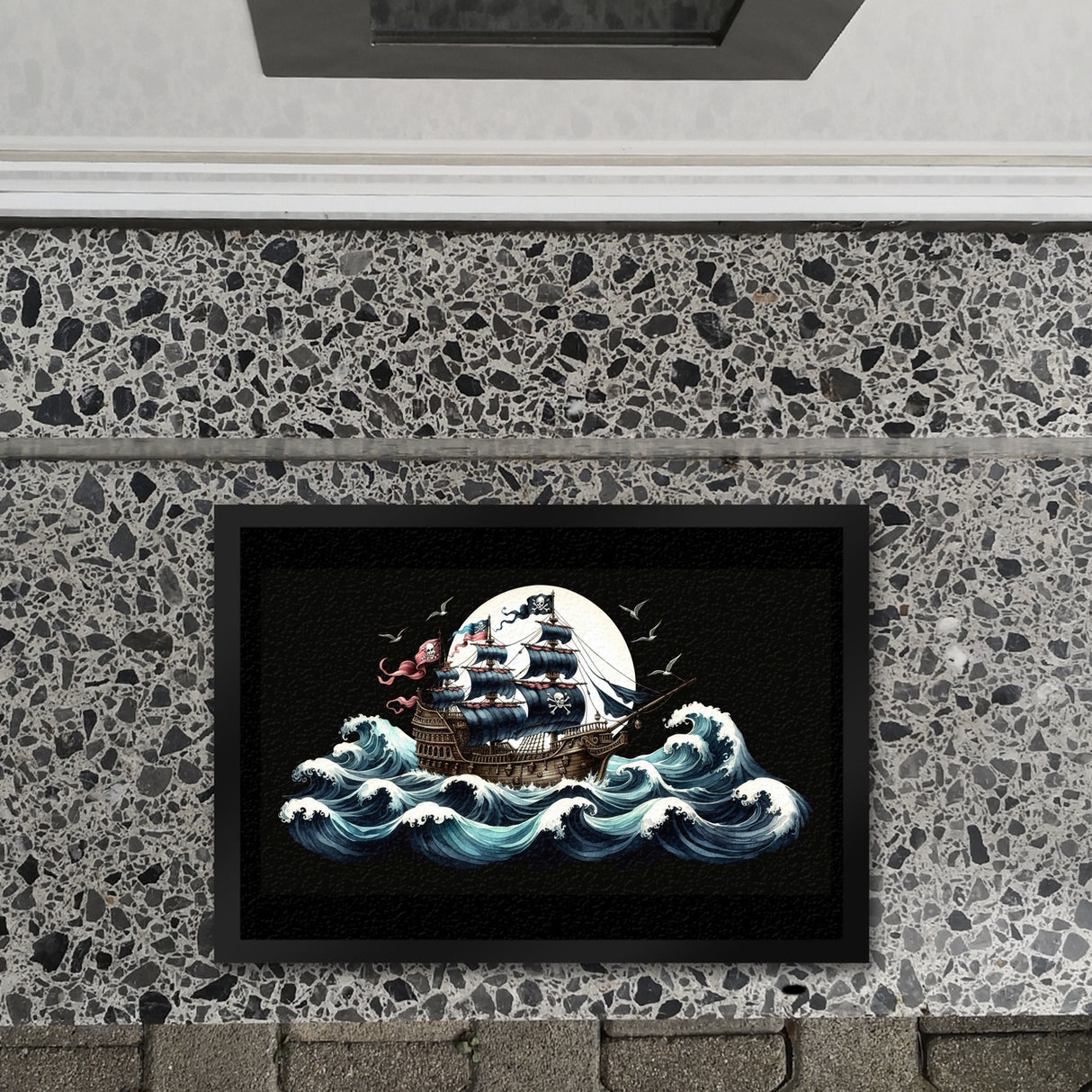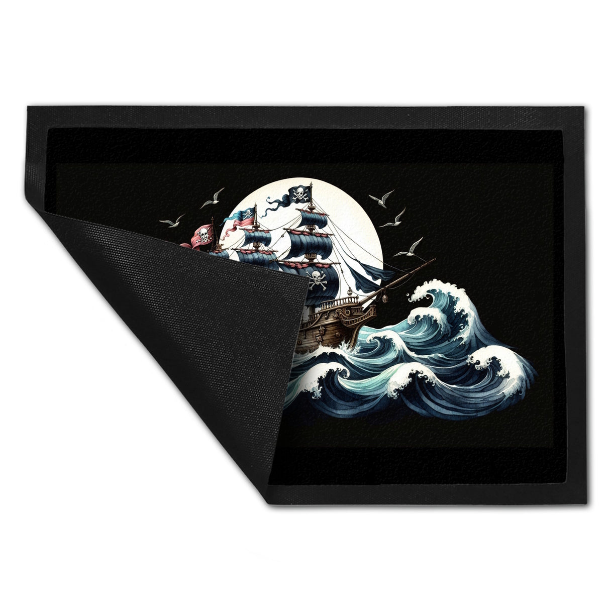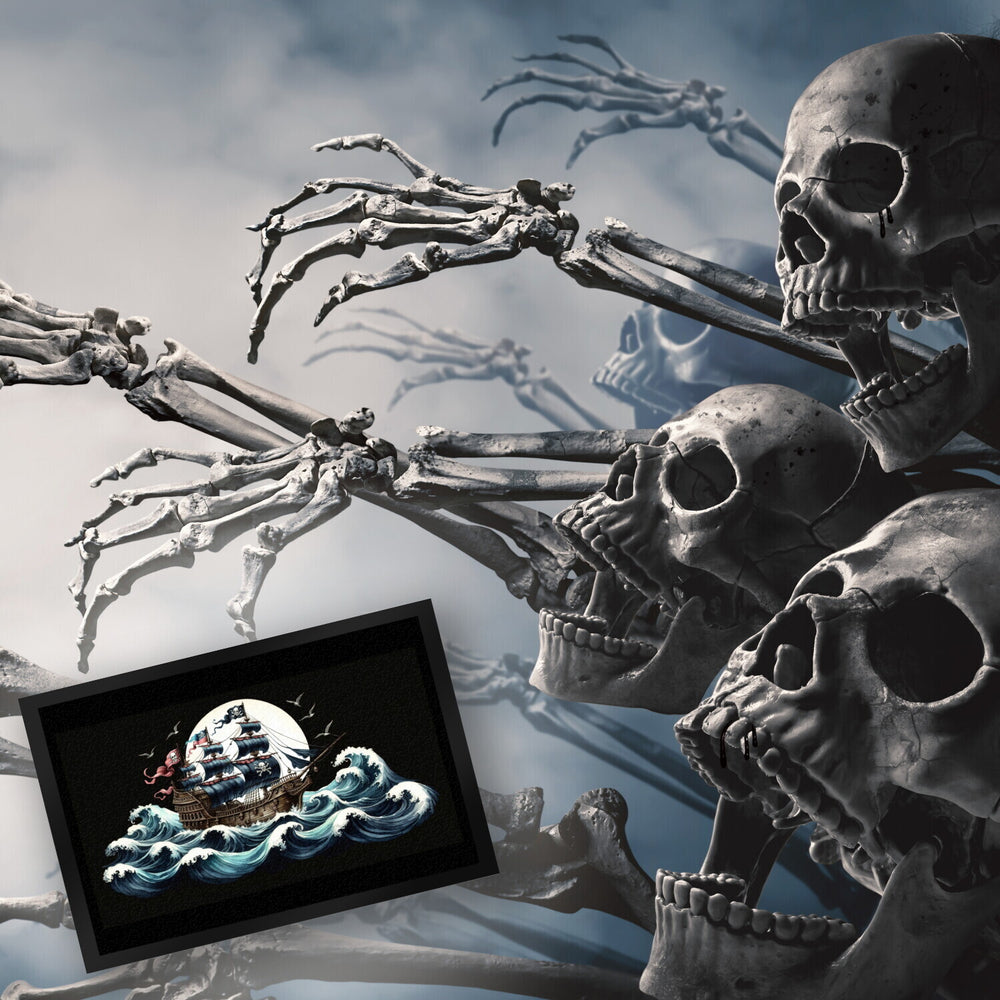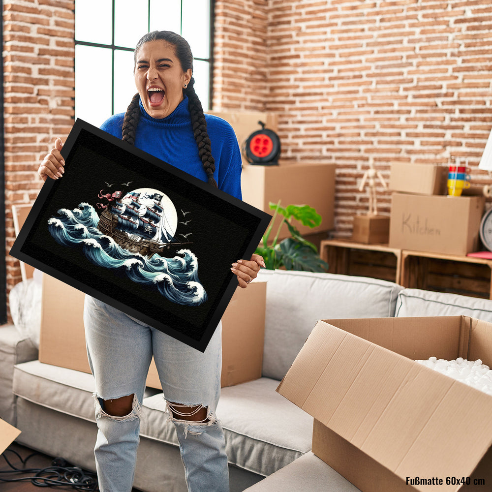 - Arrr, Landratten aufgepasst! Mit der "Piratenschiff auf hoher See Fußmatte" holt ihr euch das Abenteuer nach Hause. Tretet ein und lasst den Alltag hinter euch – hier warten schwarze Segel, der Ruf des Ozeans und natürlich eine Totenkopfflagge, die im Wind flattert!