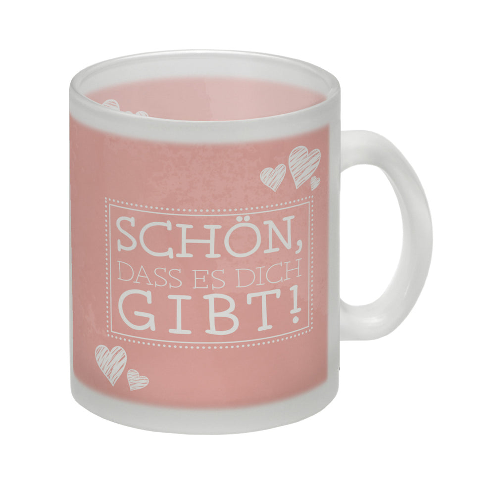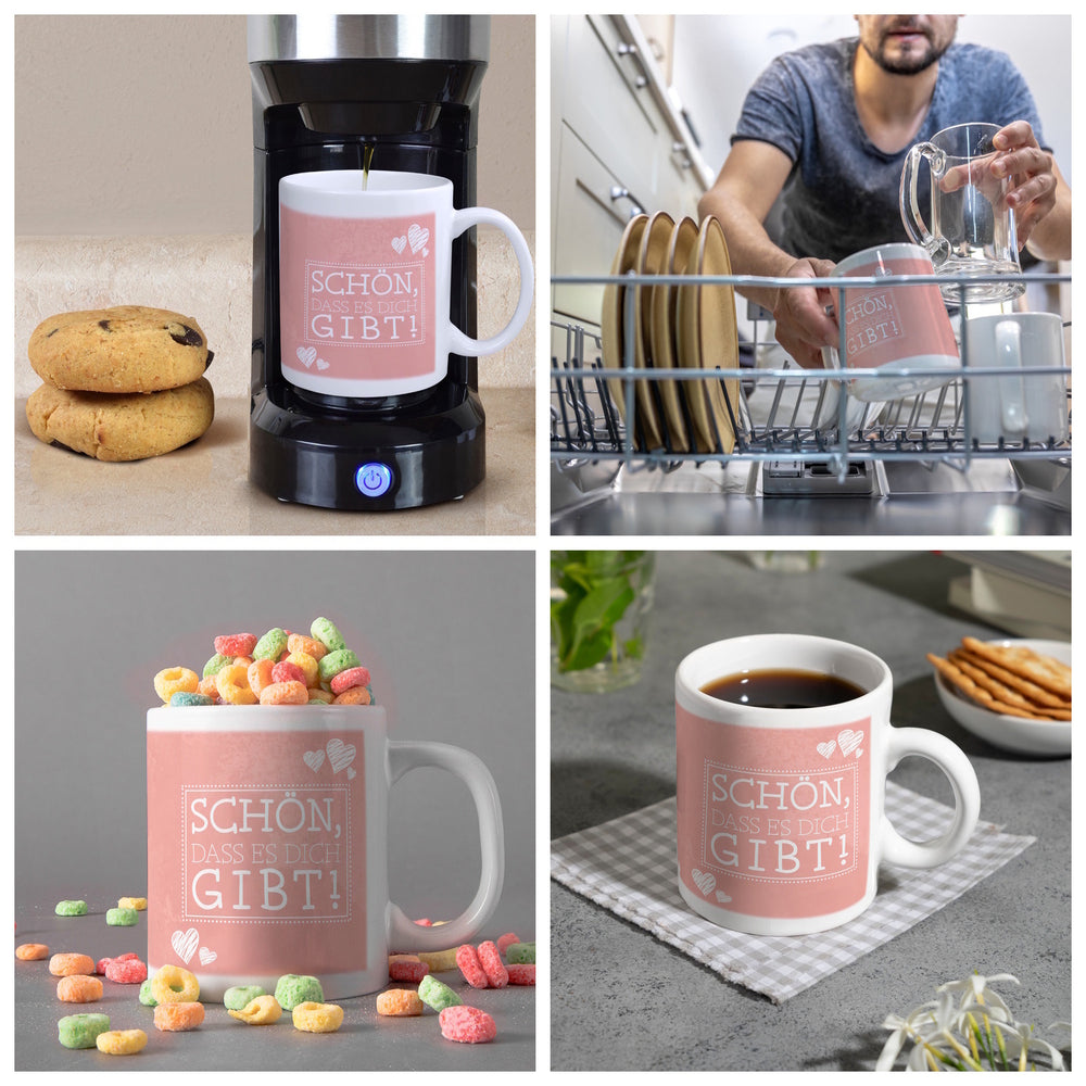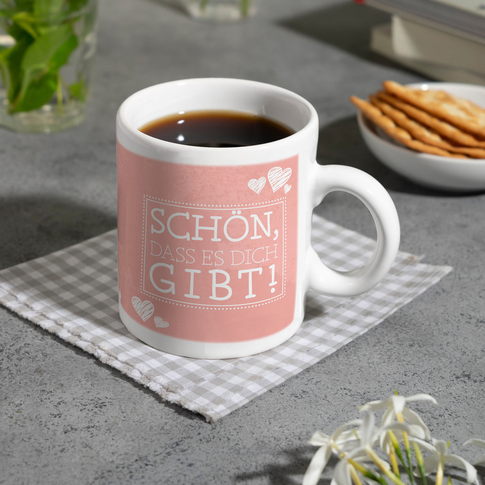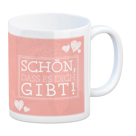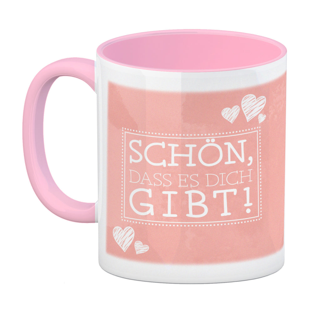 Schön, dass es dich gibt Kaffeebecher in pink mit Herzchen