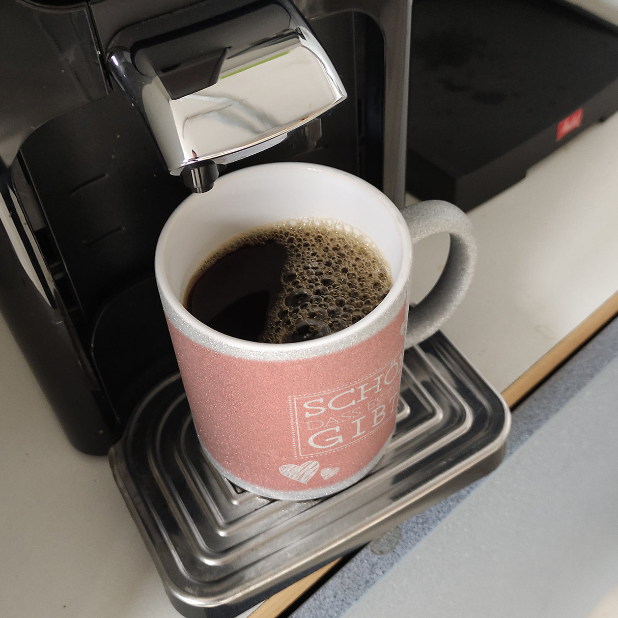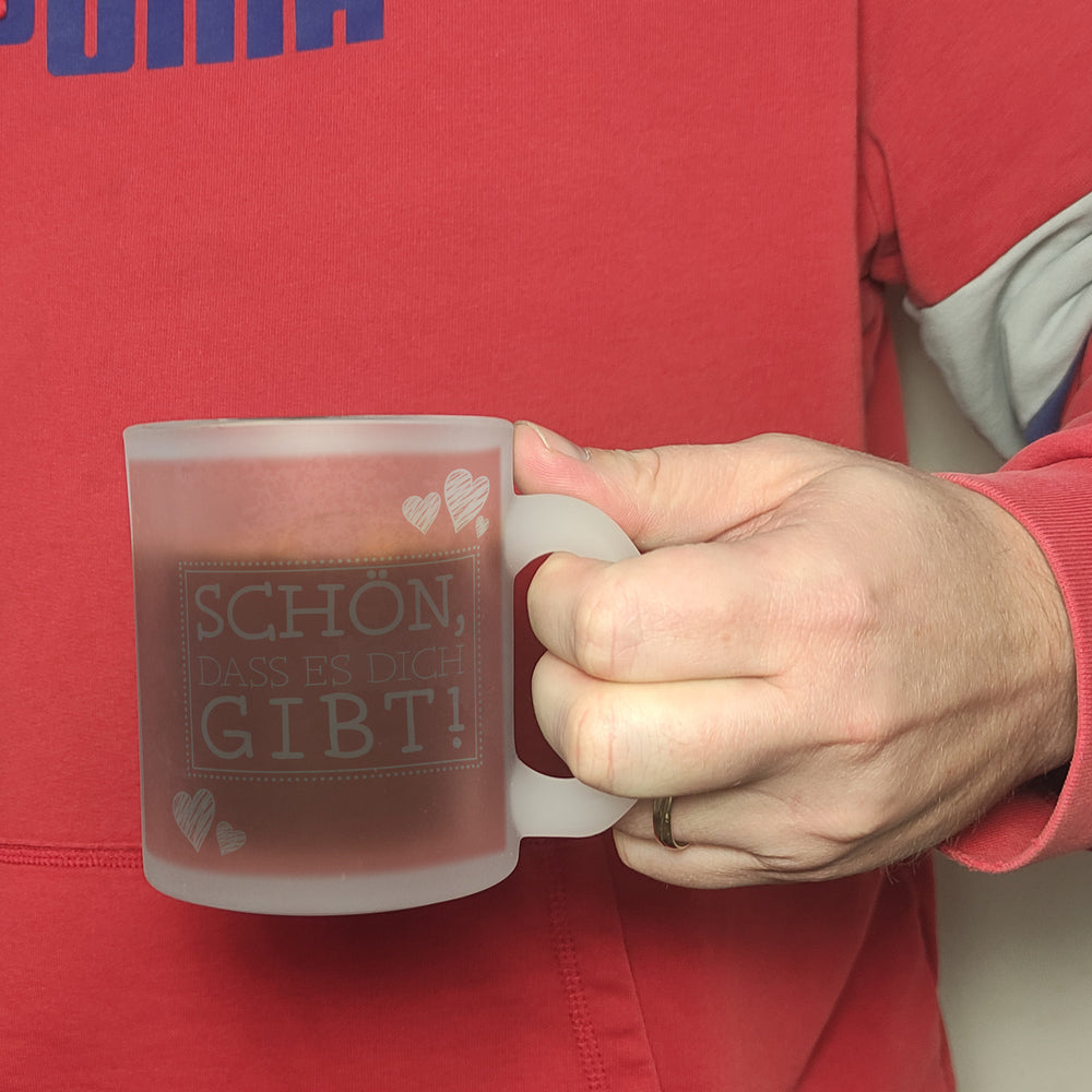 - 1x Schön, dass es dich gibt Kaffeebecher in pink mit Herzchen in der gewählten Ausführung