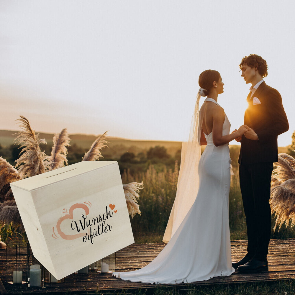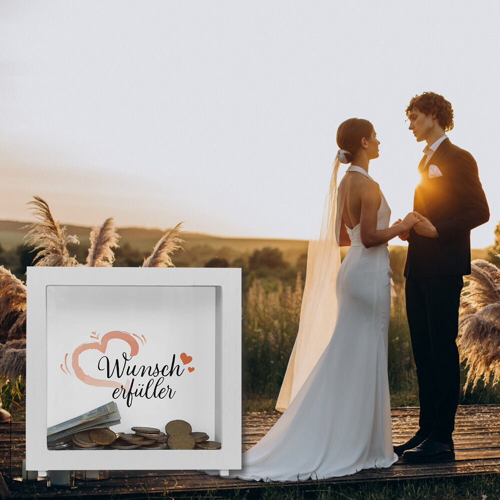 Hochzeit Spardose mit dekorativem Design und goldenen Herzen - Hochzeitskasse