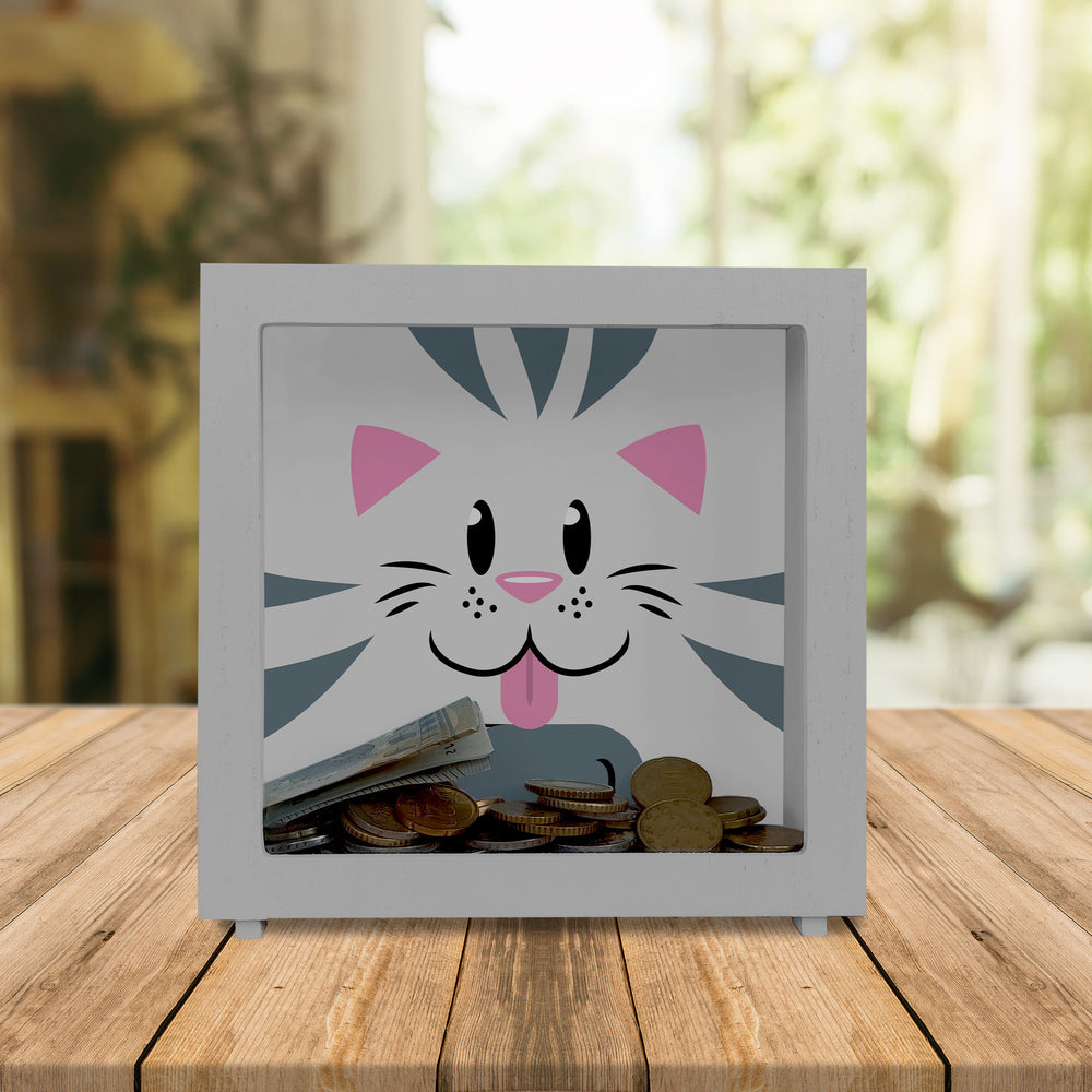 Entdecke diese süße Spardose mit dem niedlichen Katzengesicht. Sie ist die perfekte Geschenkidee für Kinder und Jugendliche, die Haustiere lieben. Wir bieten unterschiedliche Varianten: als schlichte Holzspardose, ovale Keramik-Version oder exklusive Rahmen-Variante aus Holz mit Sichtfenster. Mit viel Liebe zum Detail hergestellt in Deutschland, überzeugt unsere Spardose durch einen qualitativ hochwertigen Druck. Lass dich von unserer großen Auswahl an Sprüchen und Motiven inspirieren und erfreue dich an diesem süßen Geschenk - einer Spardose für das erste selbst angesparte Geld. Egal ob du ein kleines Taschengeld für einen größeren Wunsch sparen möchtest oder jemand anderem eine Freude machen willst - mit der Katzengesicht-Spardose hast du immer das passende Geschenk parat!