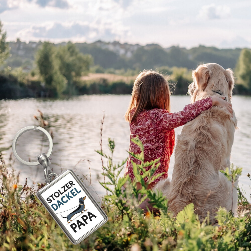 - 1x Stolzer Dackel Papa Schlüsselanhänger in der gewählten Ausführung