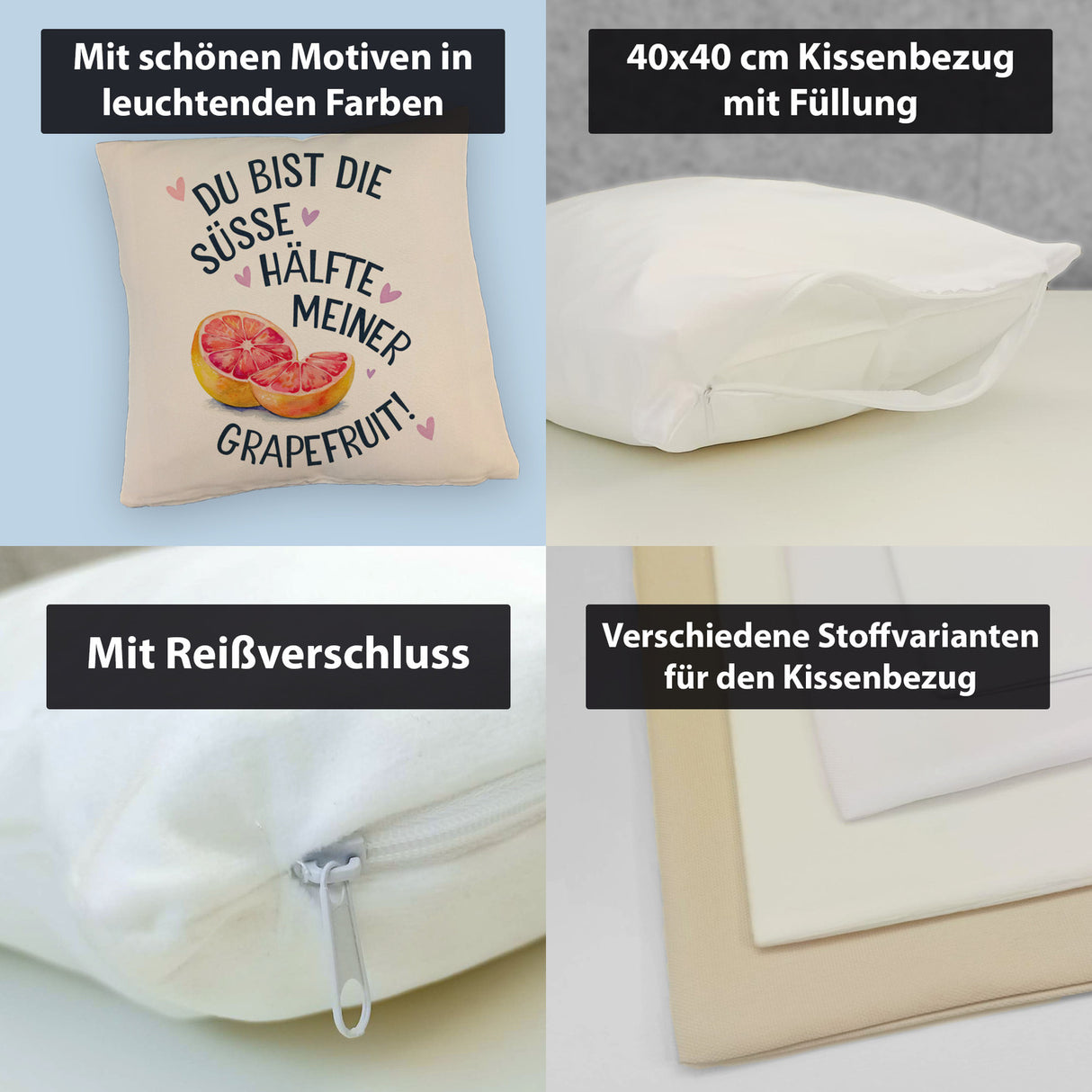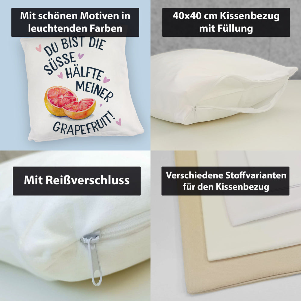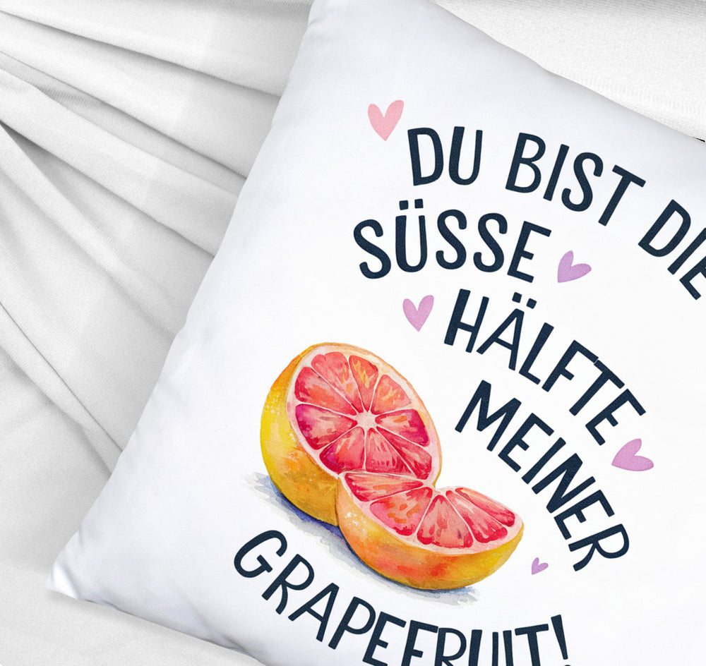 - 1x Süße Hälfte Kissen Grapefruit Illustration in der gewählten Ausführung
