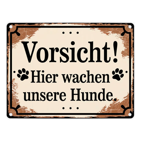 Vorsicht Hier wachen unsere Hunde Metallschild in 15x20 cm
