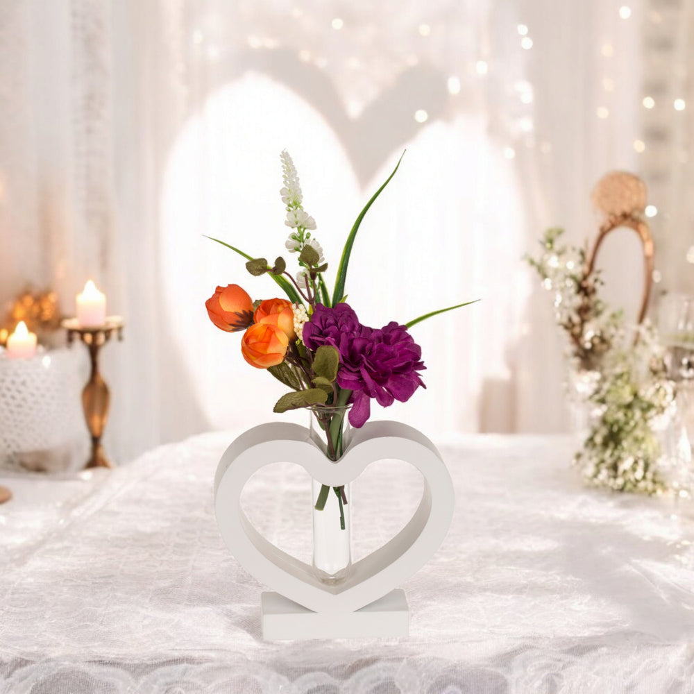 Weißes Herz mit Glasröhrchen Blumenvase - Hochzeit Tischdeko