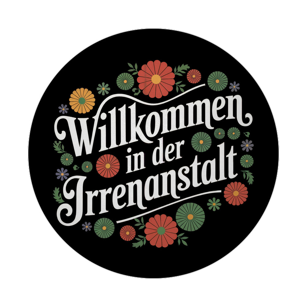 - 1x Willkommen in der Irrenanstalt Blumensprache Magnet rund in der gewählten Ausführung