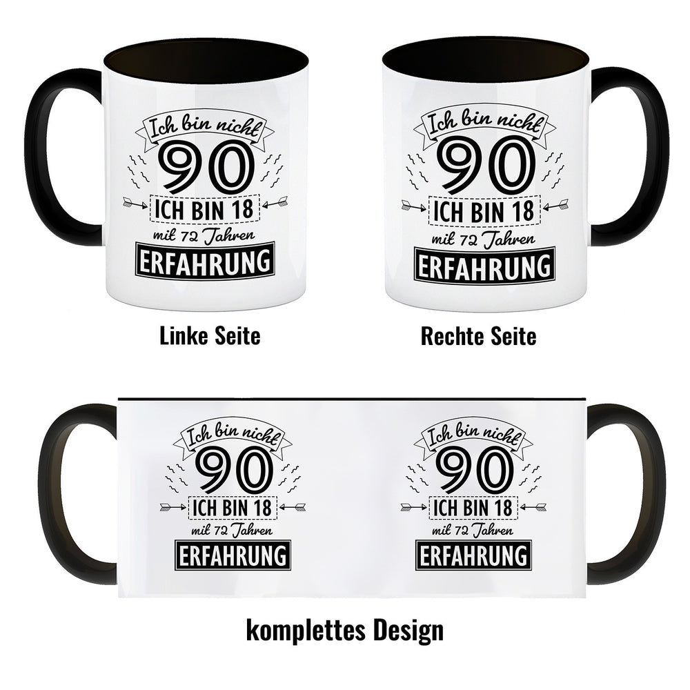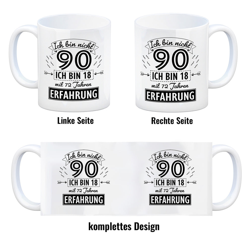 • 1x Witziger Kaffeebecher für den 90. Geburtstag mit Motiv: Erfahrung in der gewählten Ausführung