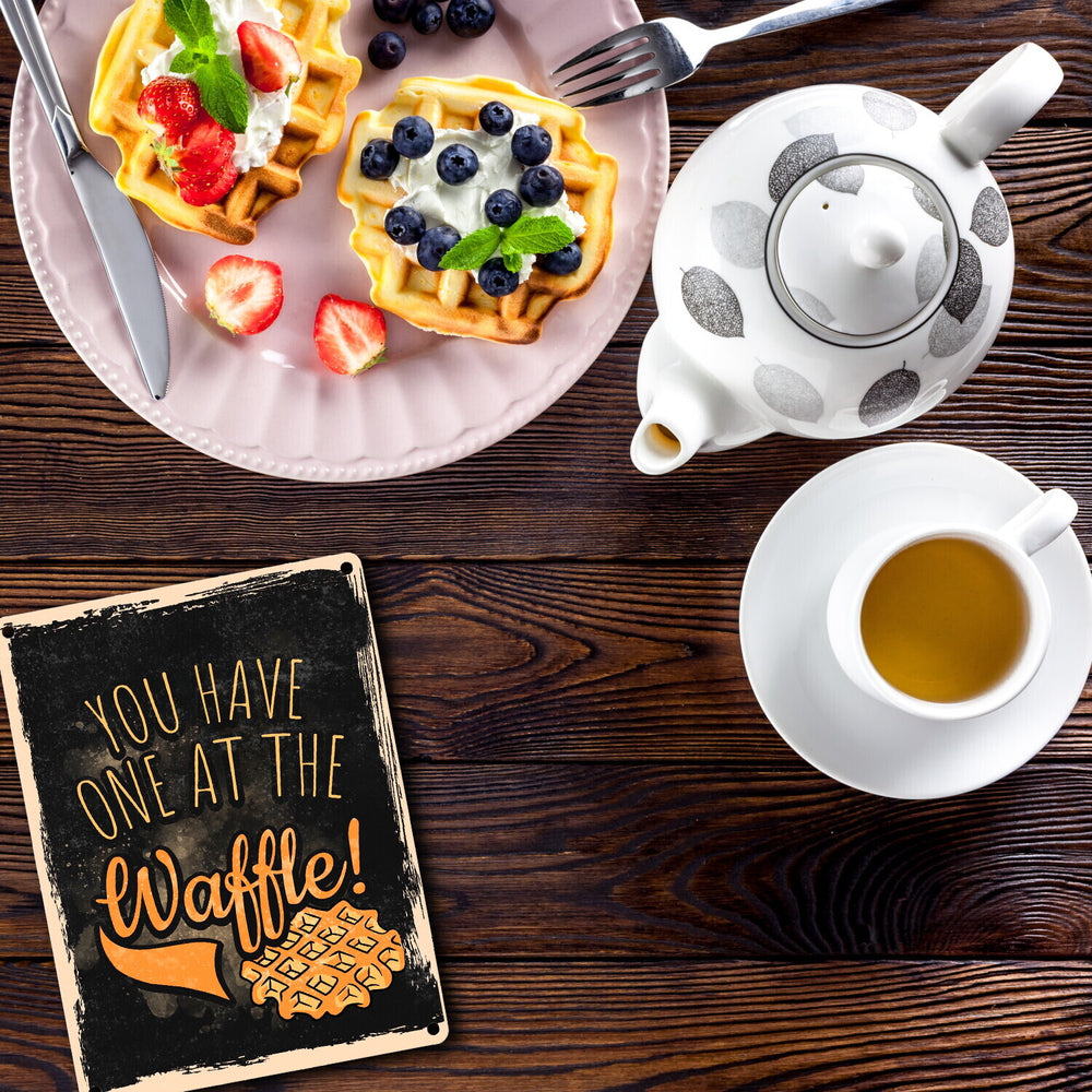 - Alle deine Freunde die 'one at the waffle' haben werden sich garantiert riesig über dieses Metallschild freuen, welches eine großartige Dekoration für die Küche oder das Büro ist.