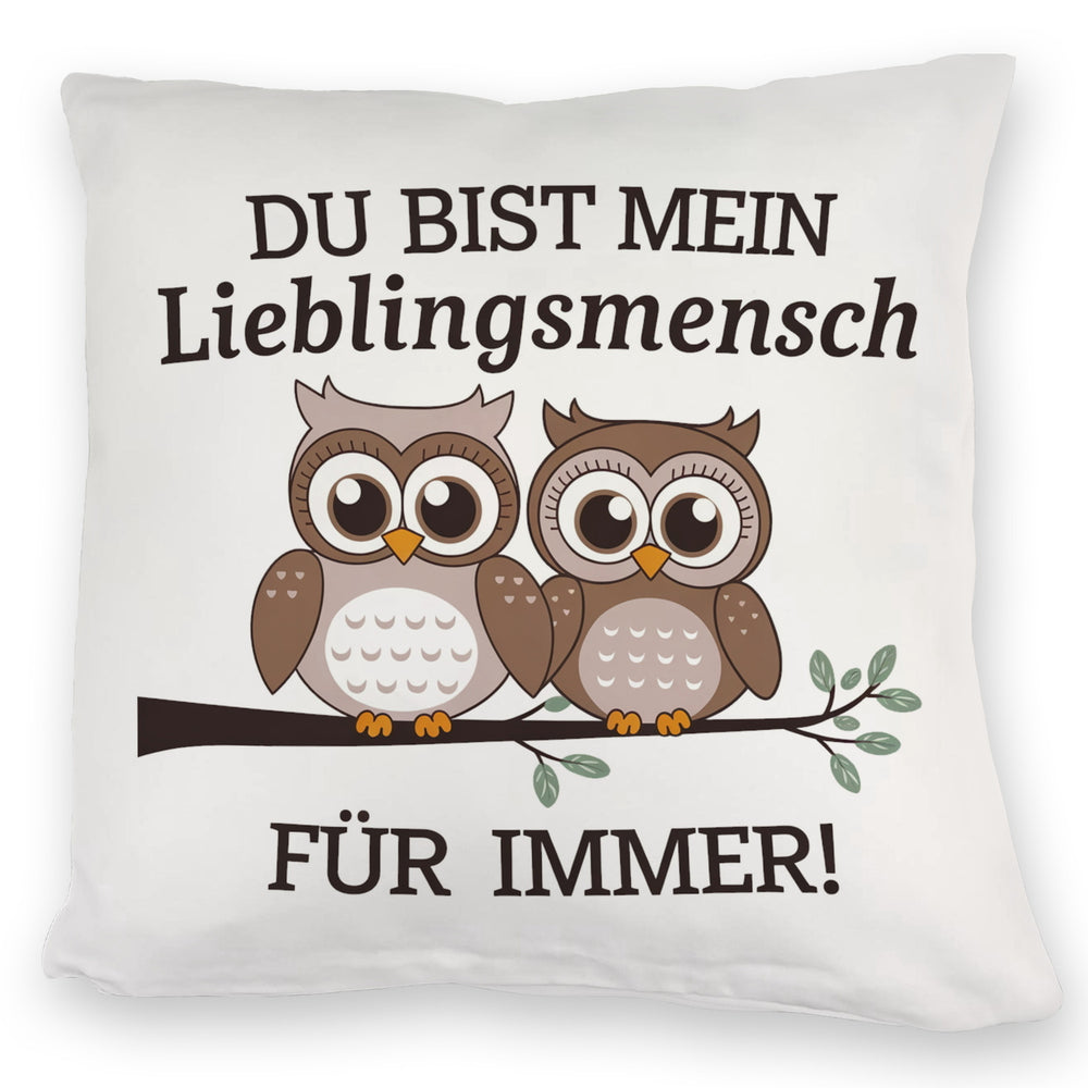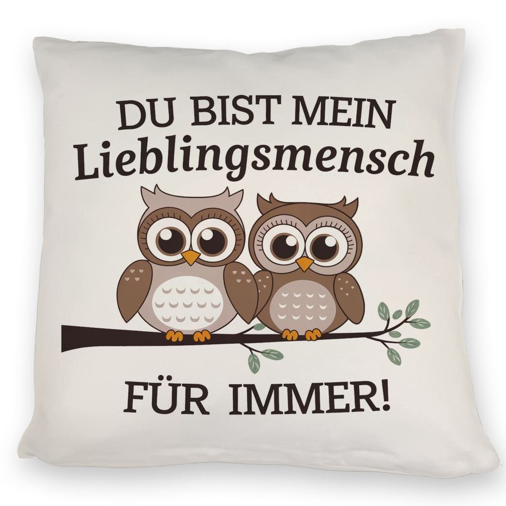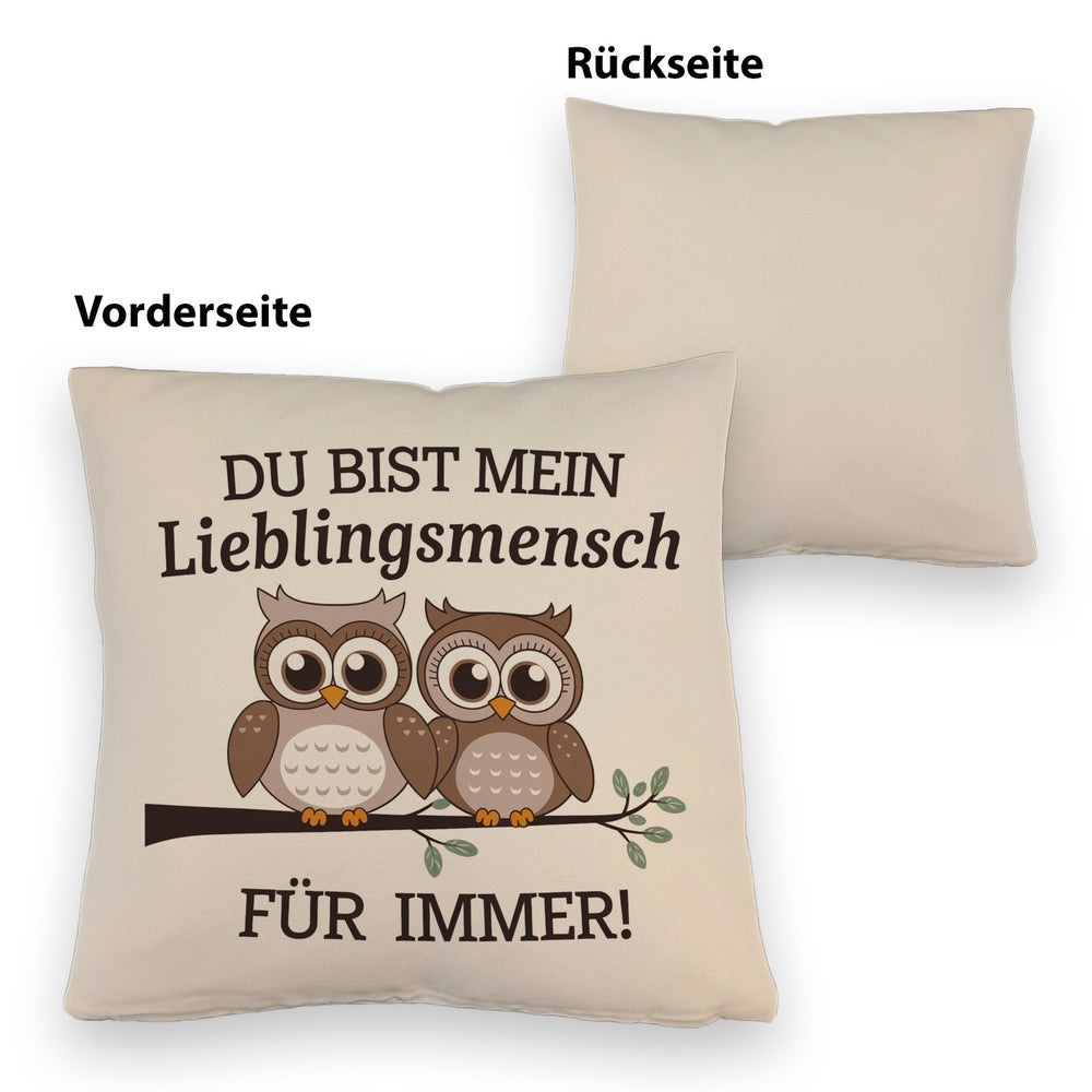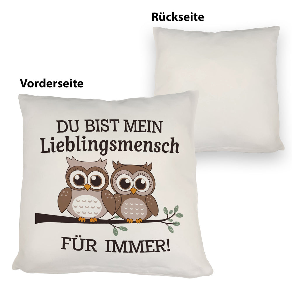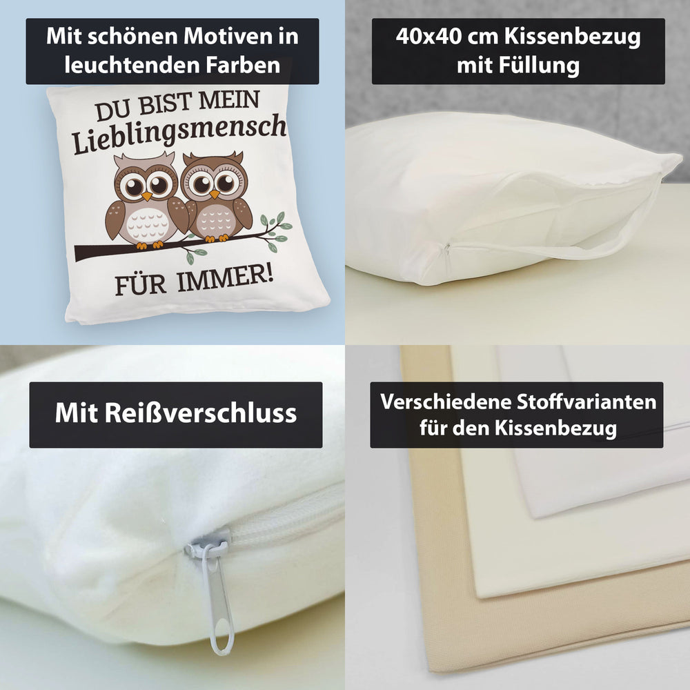 - 1x Zwei niedliche Eulen Lieblingsmensch Kissen in der gewählten Ausführung