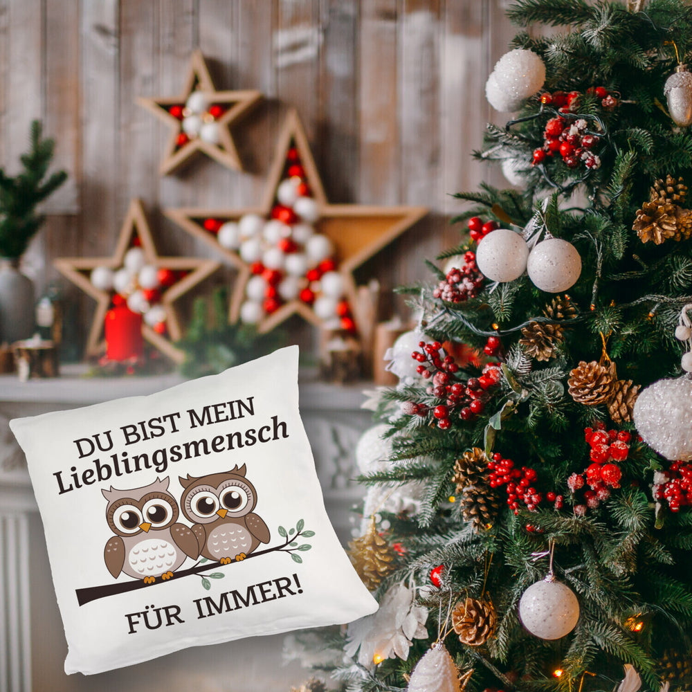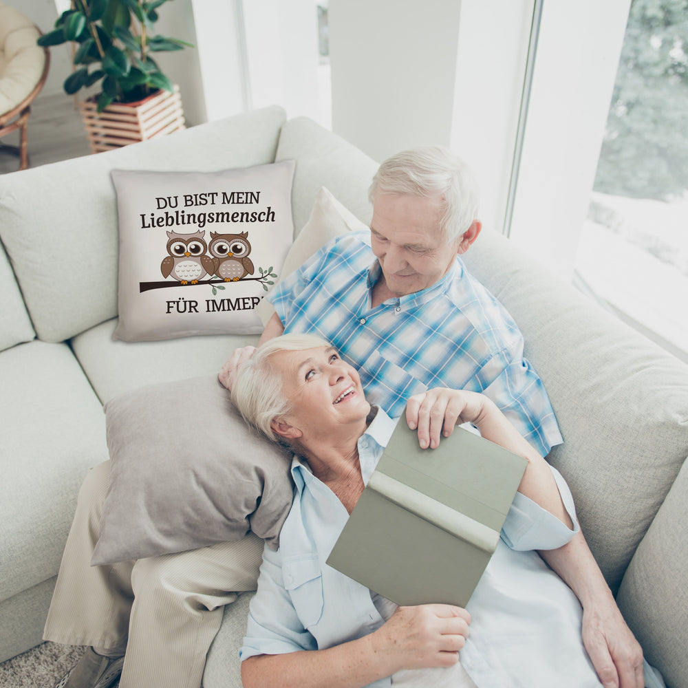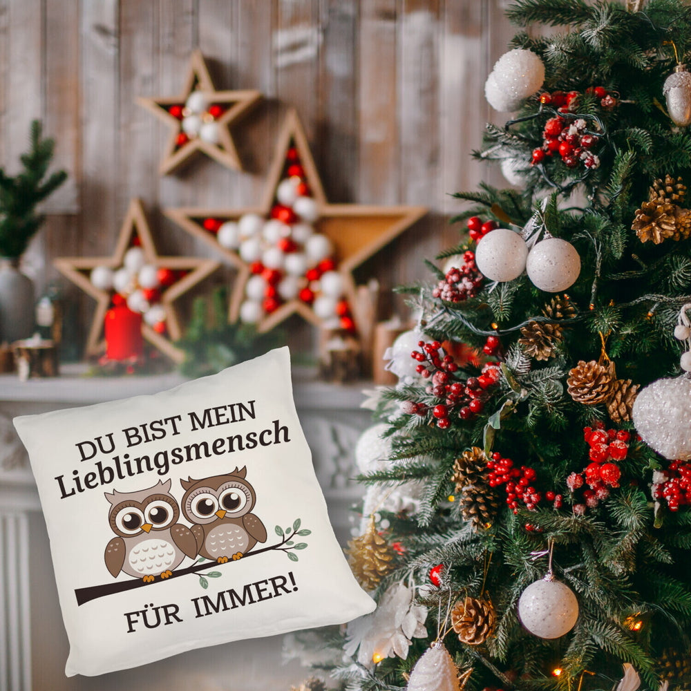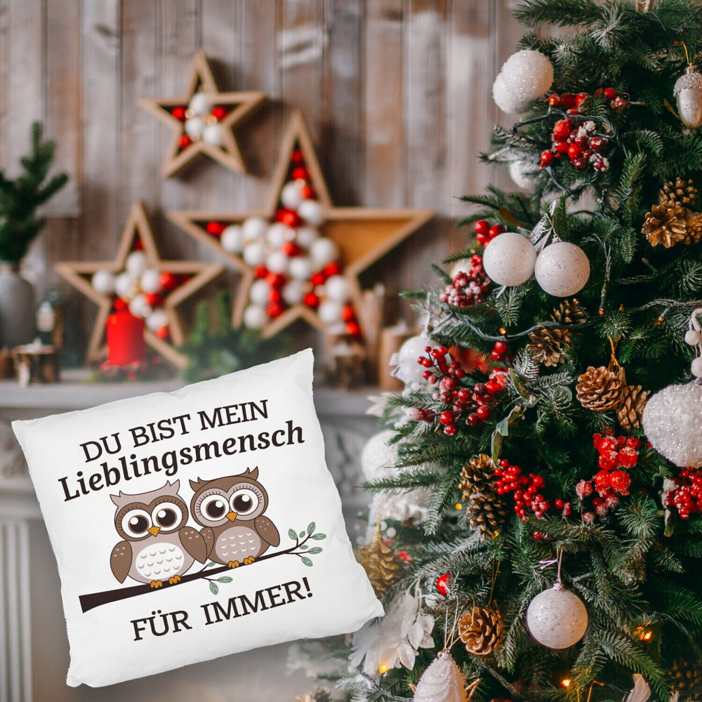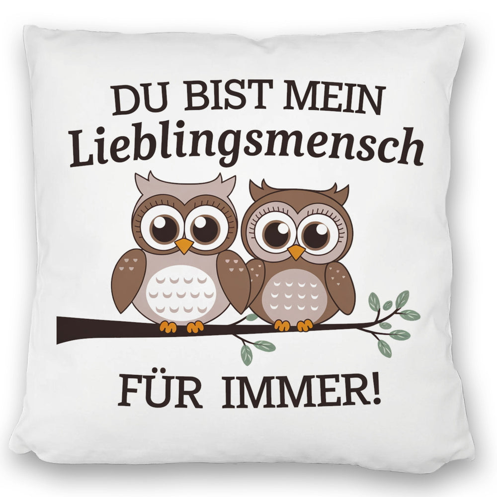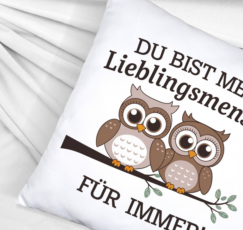 - 1x Zwei niedliche Eulen Lieblingsmensch Kissen in der gewählten Ausführung