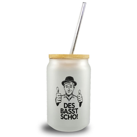 Ab €12,95Grundpreis /Nicht verfügbarAuf LagerMann mit Daumen hoch Des basst scho Trinkglas mit Bambusdeckel