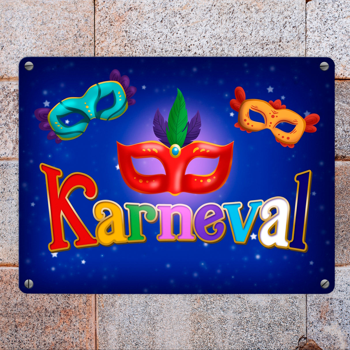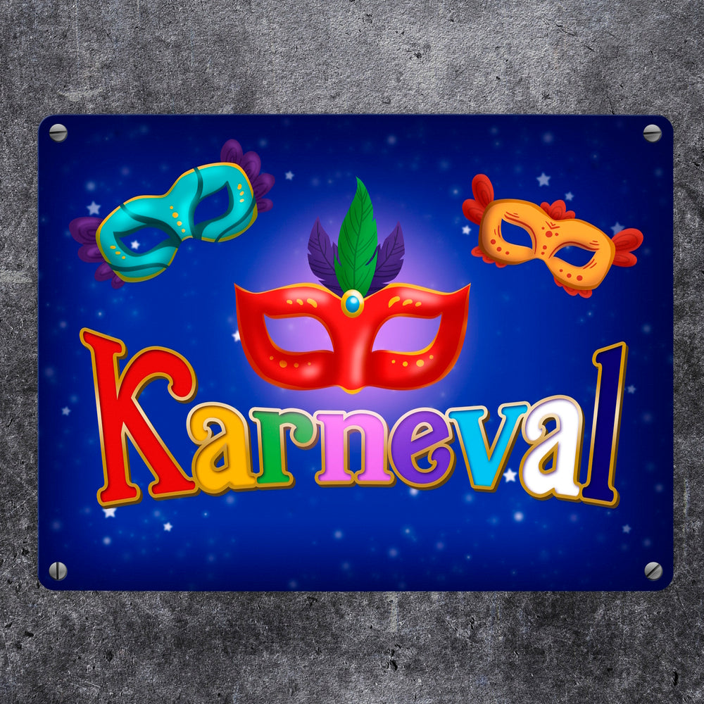 - 1x Kölner Karneval Metallschild mit bunten Ballmasken in der gewählten Größe
