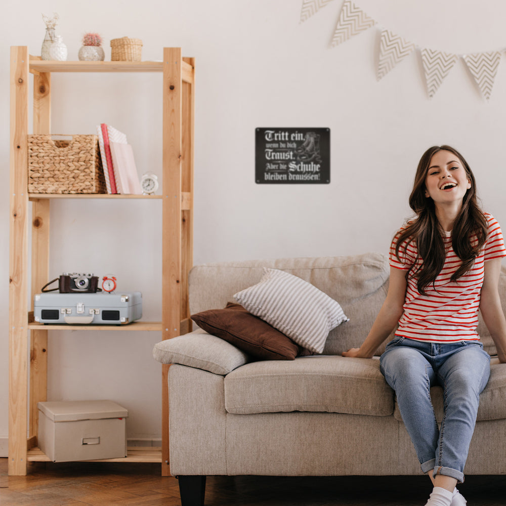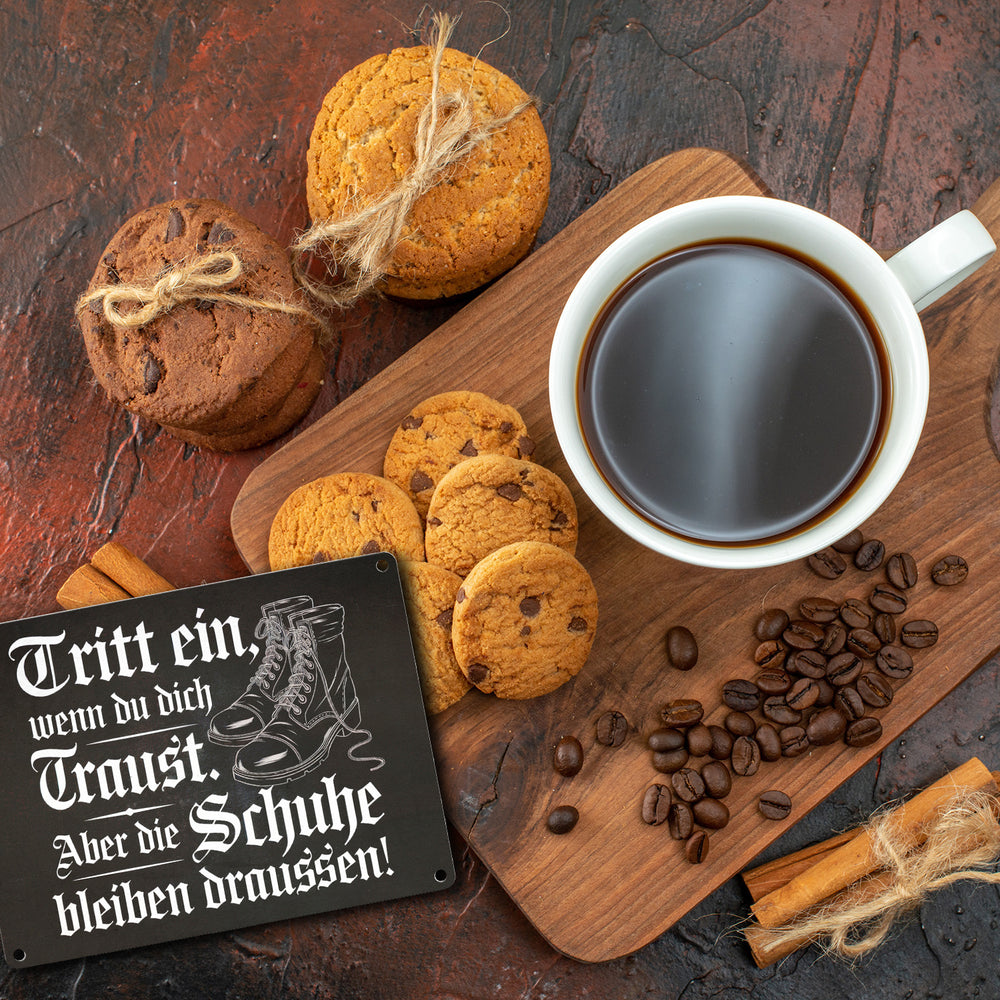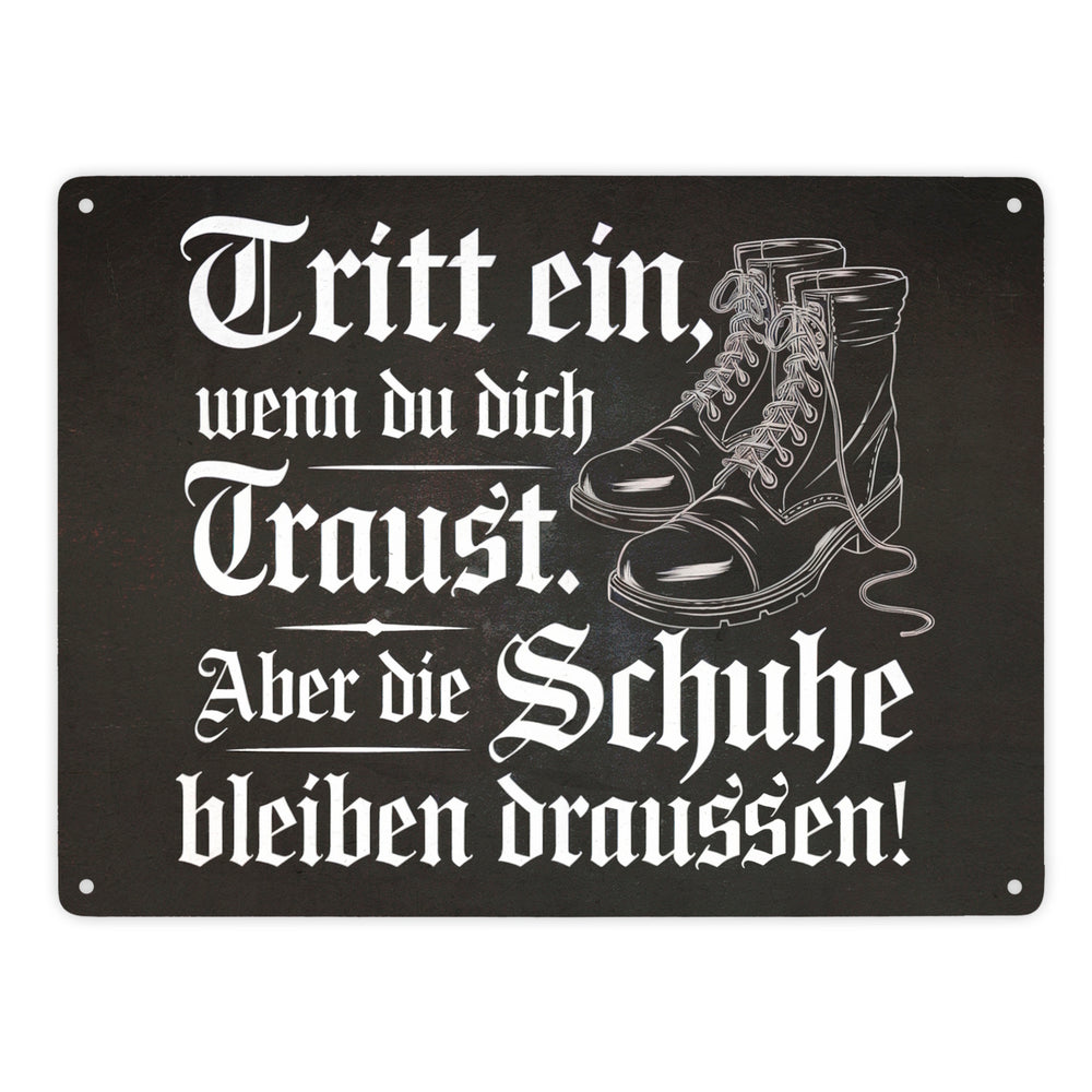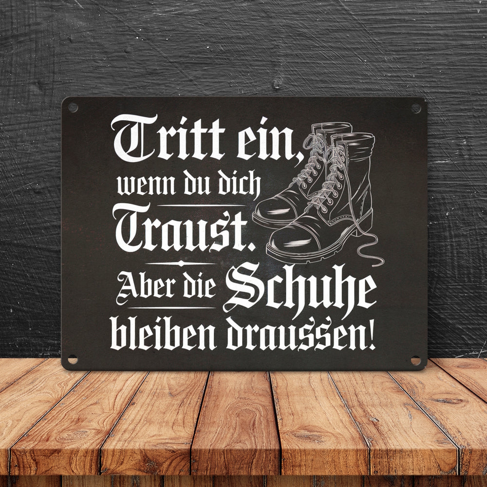 Tritt ein wenn du dich Traust Metallschild in 15x20 cm - Schuhe bleiben draussen