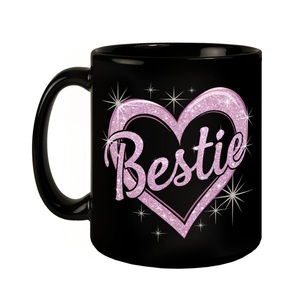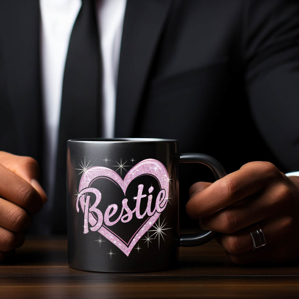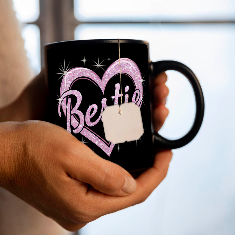 - Diese Tasse ist nicht nur ein gewöhnlicher Kaffeebecher; sie ist ein Statement! Das funkelnde Herz mit der pinken Aufschrift "Bestie" strahlt auf dem schwarzen Hintergrund wie ein leuchtender Sternenhimmel. Ideal als Geschenk für Ihre Lieblingsmenschen, die ein bisschen Glitzer im Alltag verdient haben!