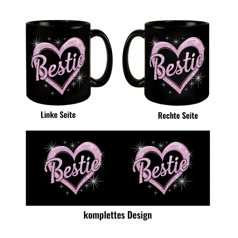 Bestie - glitzerndes pinkfarbenes Herz Tasse