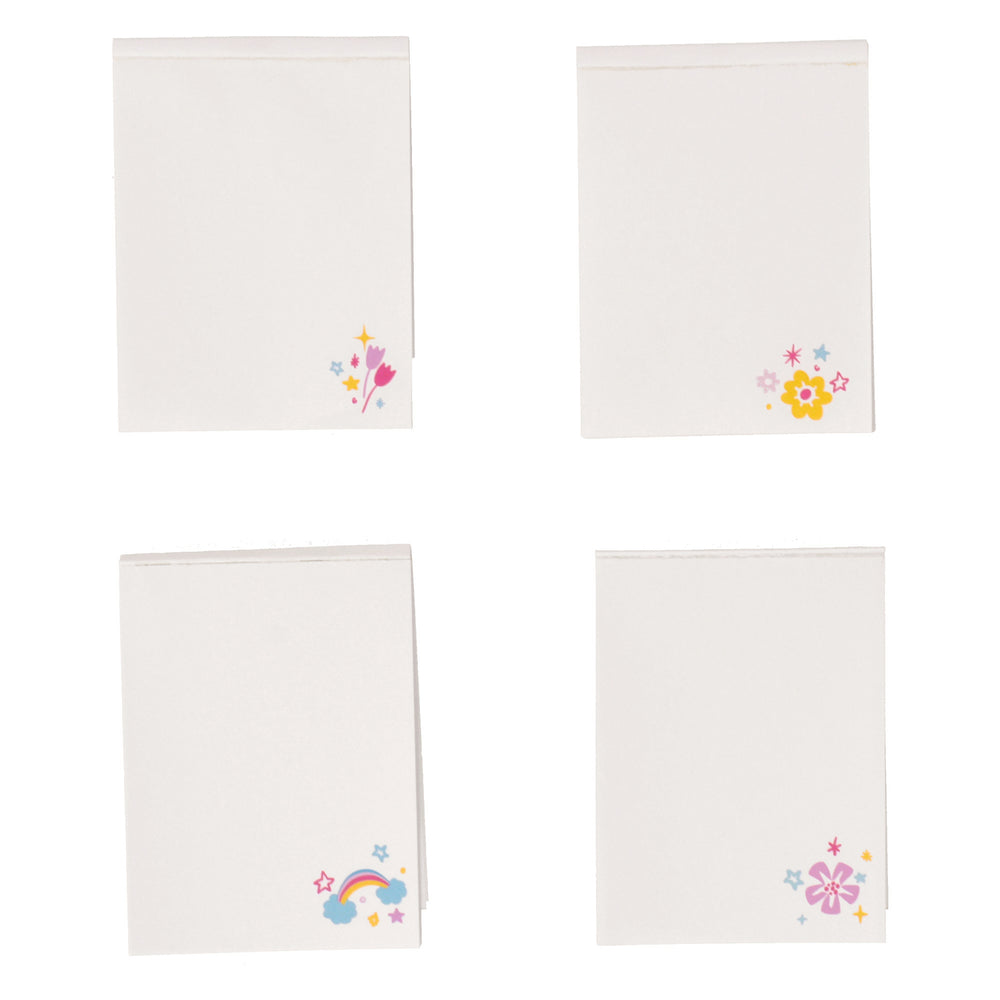• Alle Blätter blanko mit niedlichem Ornament aus Blumen, Sternen oder Regenbogen im unteren Blatteck.
