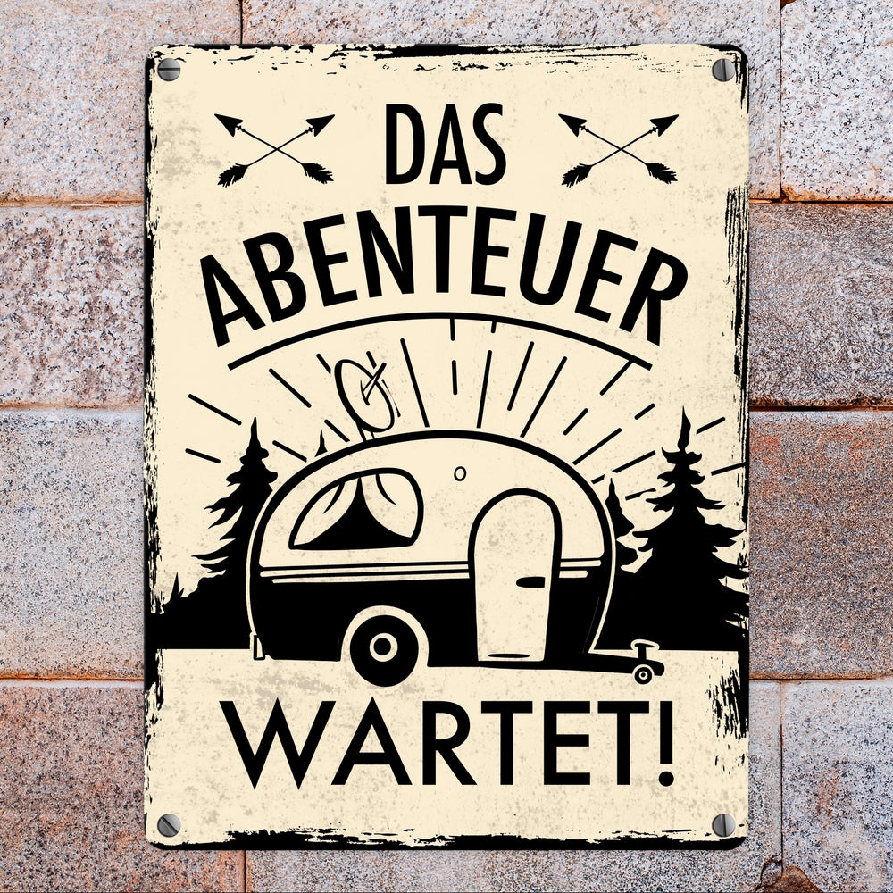 Das Abenteuer wartet Metallschild mit Campermotiv