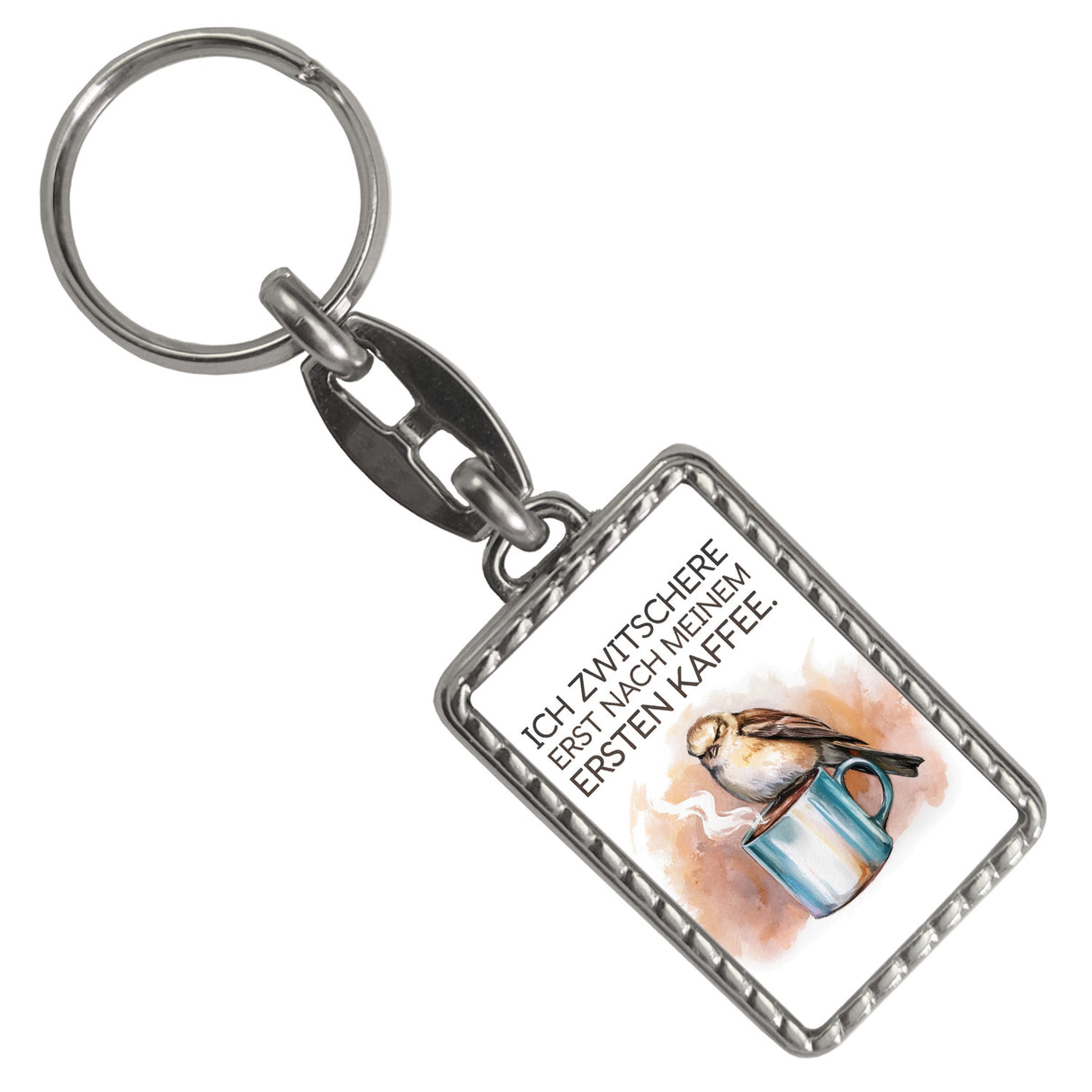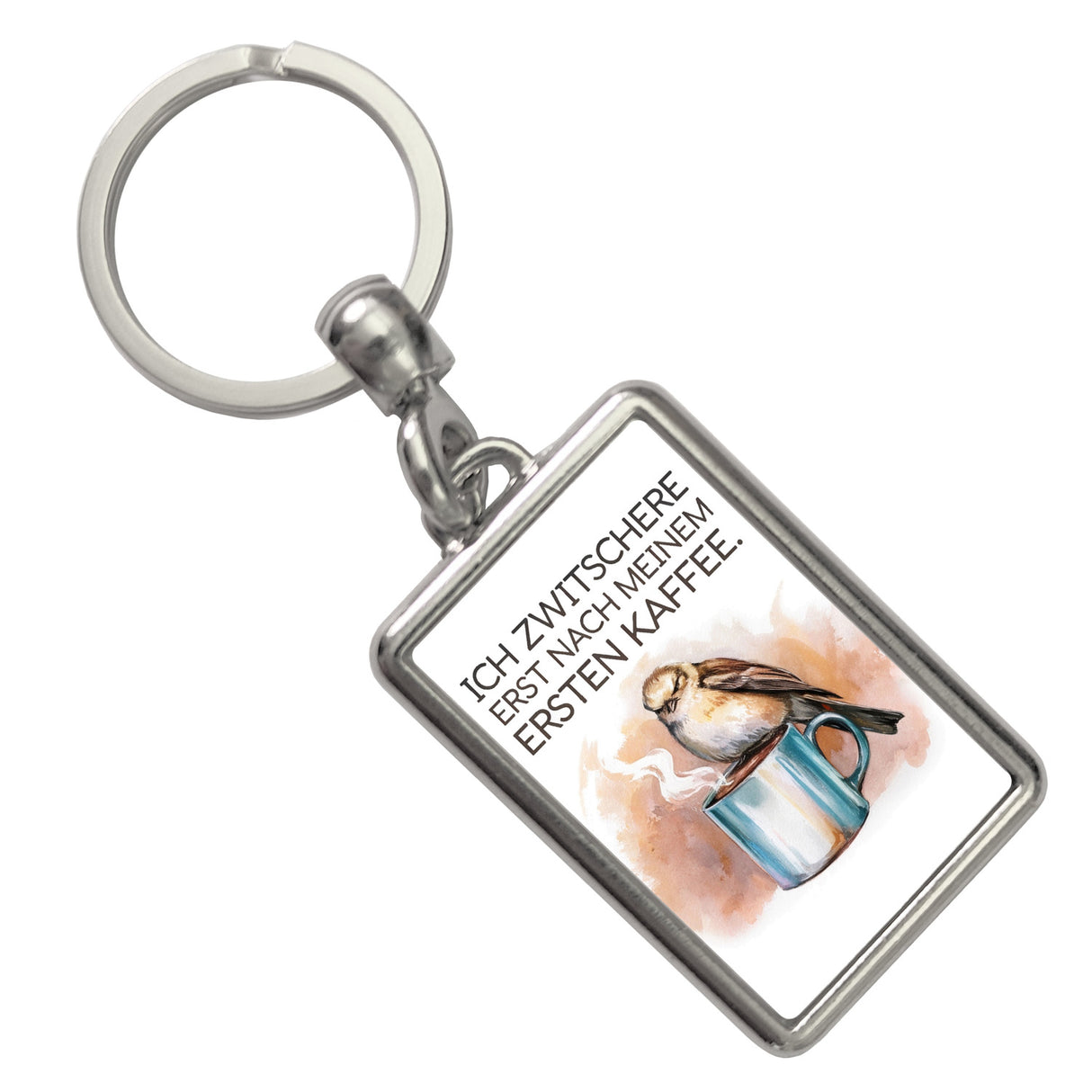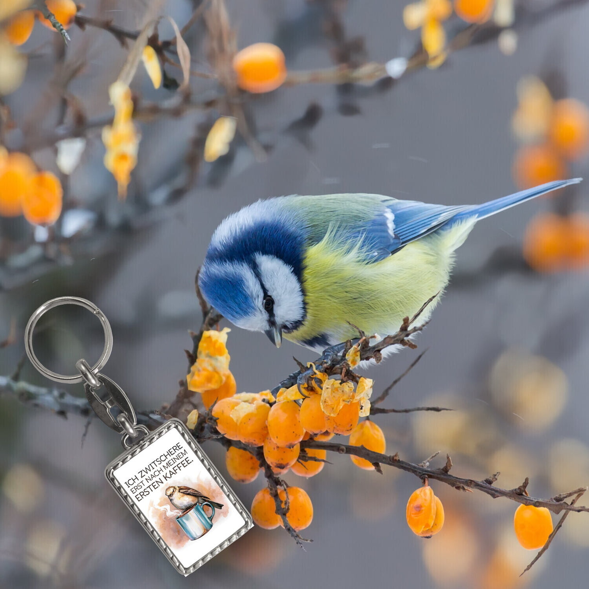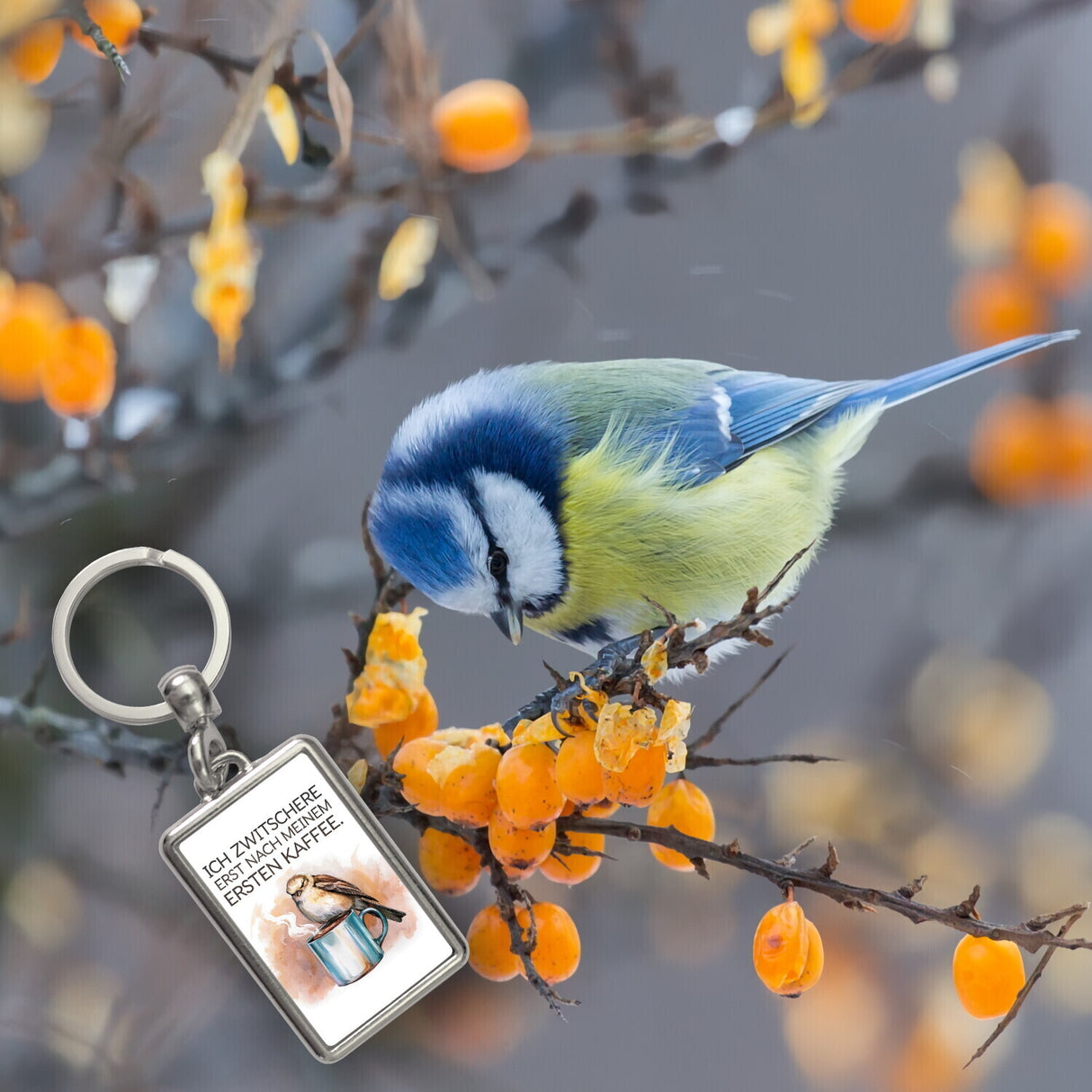 - 1x Erst Kaffee, dann Zwitschern Schlüsselanhänger mit Vogel auf Kaffeetasse in der gewählten Ausführung