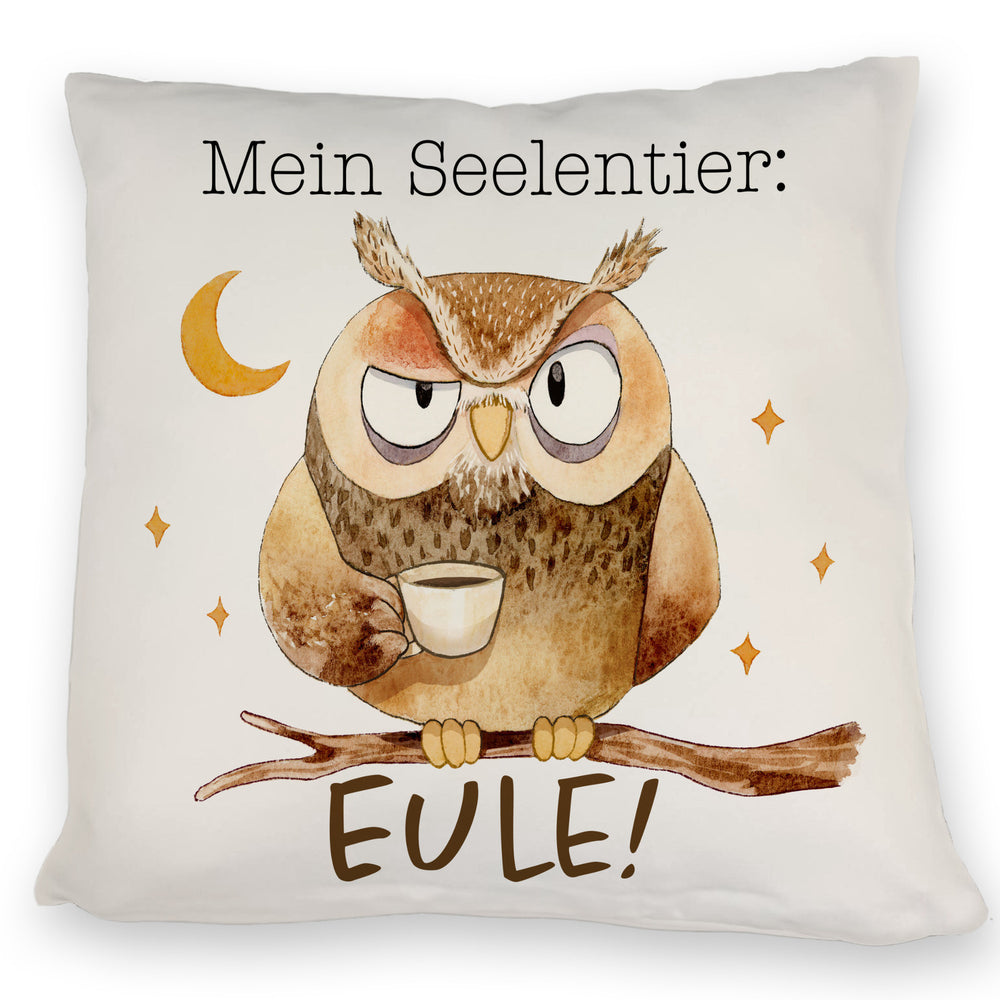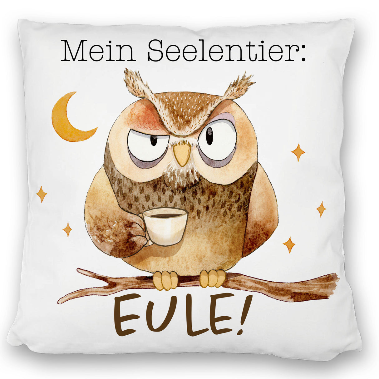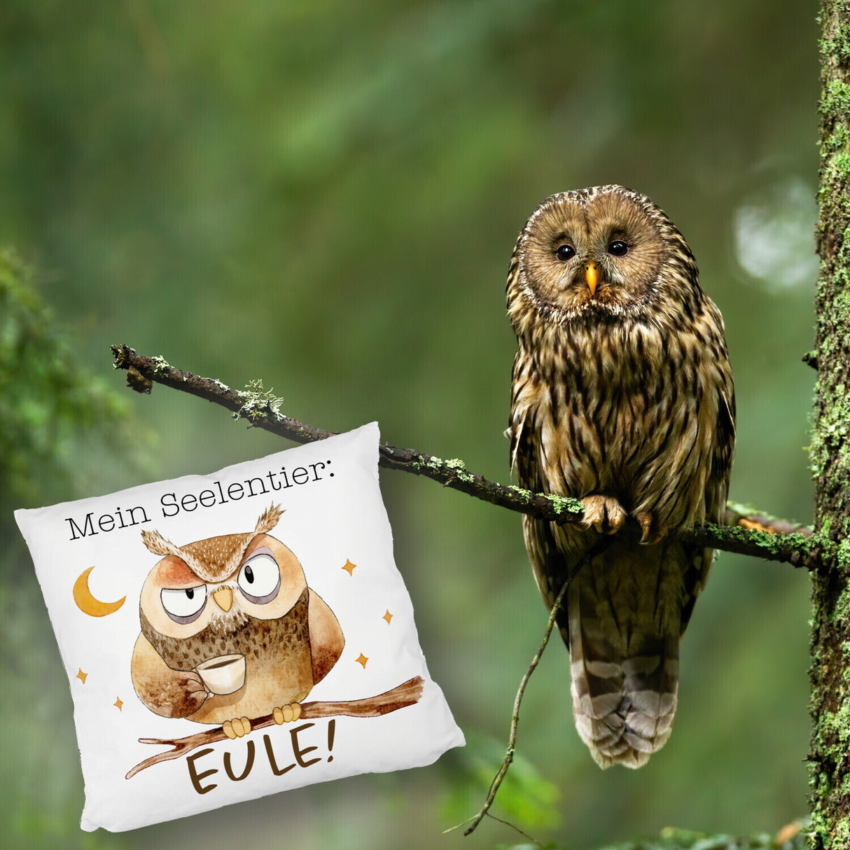 Eule Kissen mit Spruch Mein Seelentier Eule