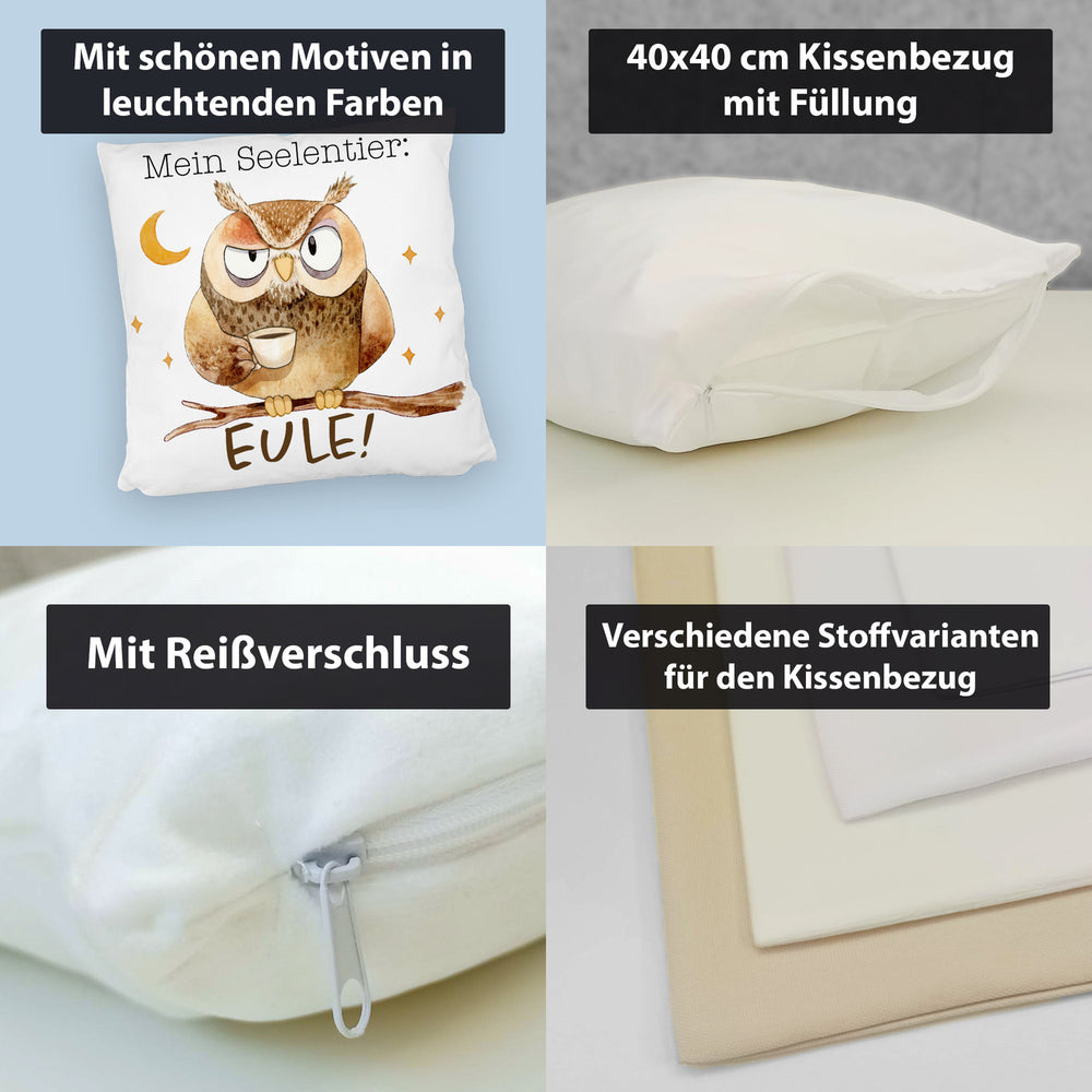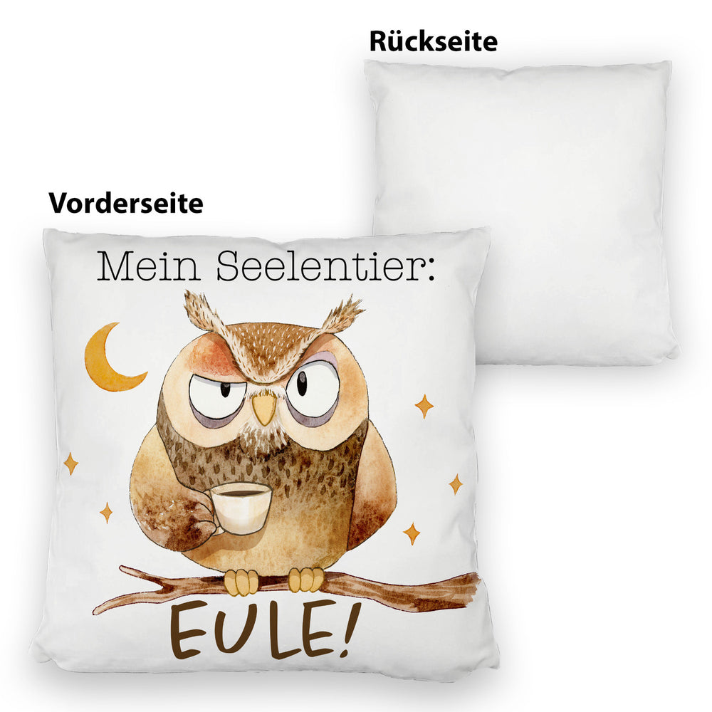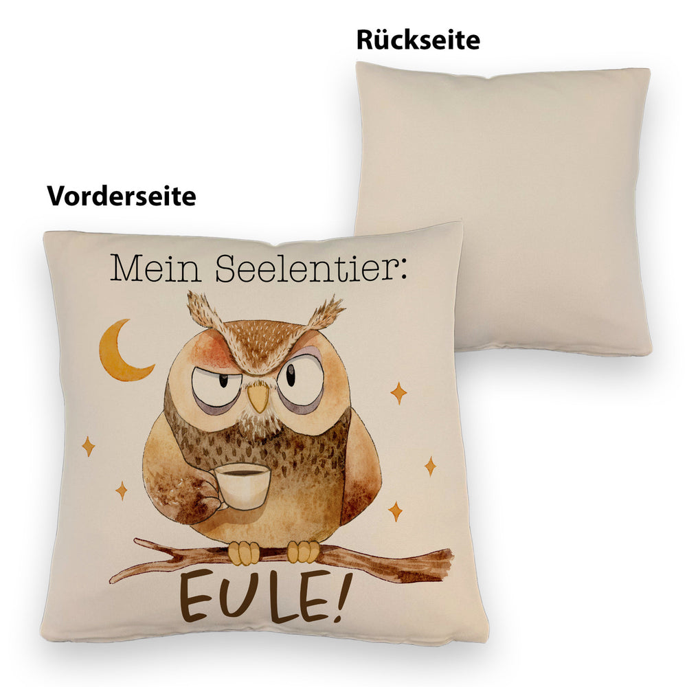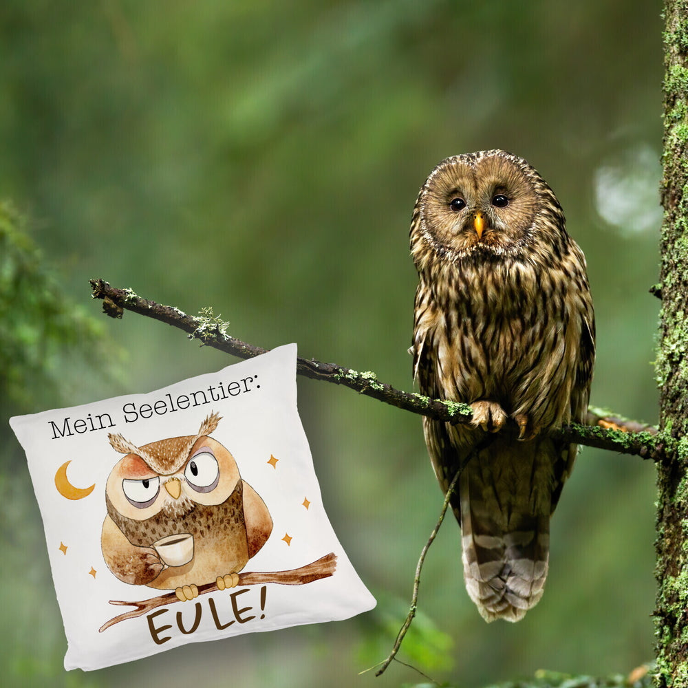 - 1x Eule Kissen mit Spruch Mein Seelentier Eule in der gewählten Ausführung