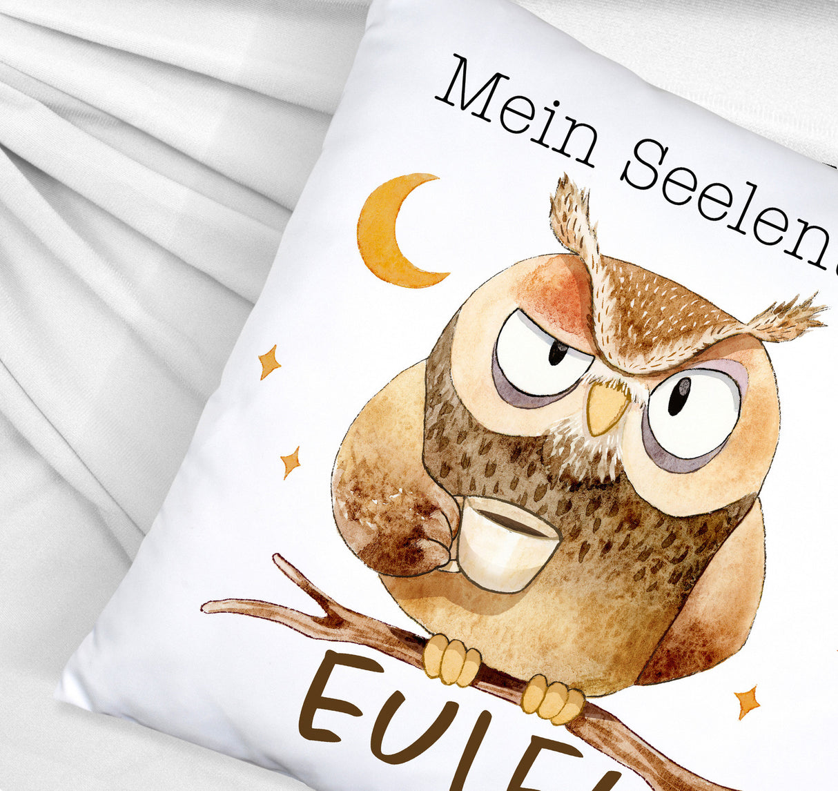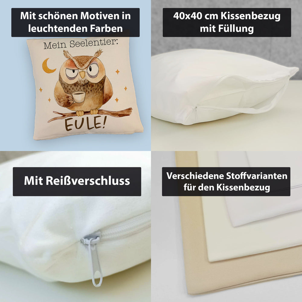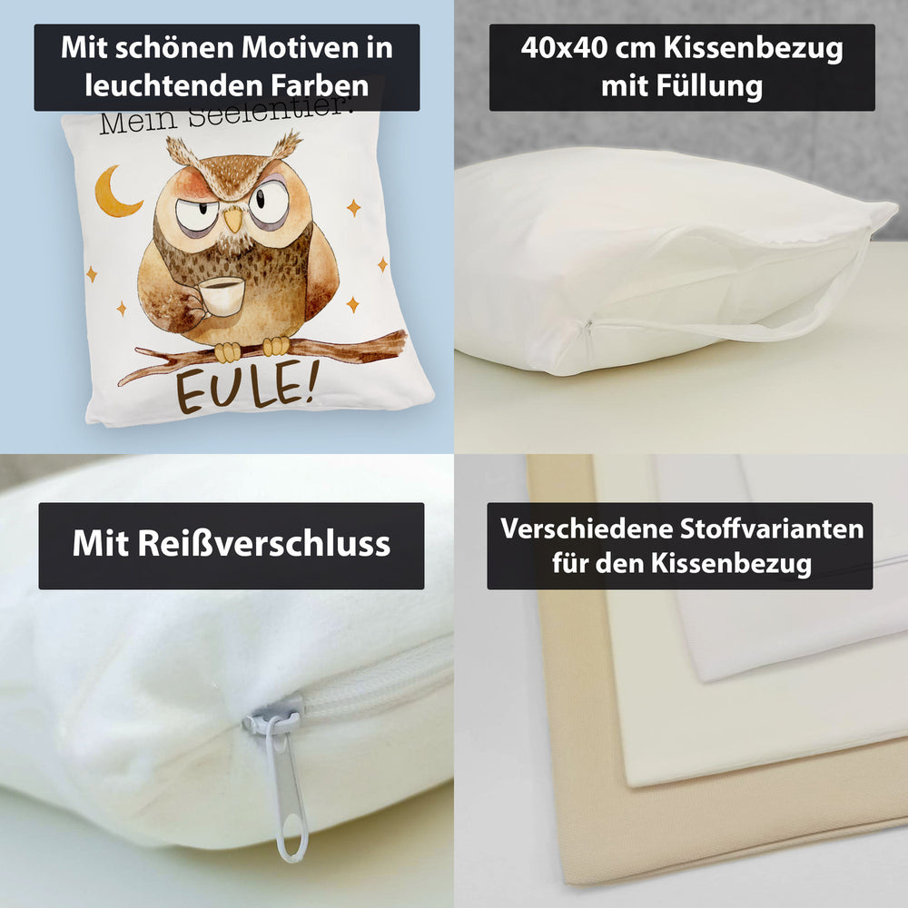 - 1x Eule Kissen mit Spruch Mein Seelentier Eule in der gewählten Ausführung