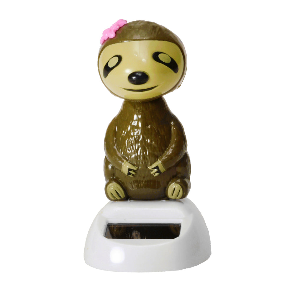 Diese niedliche Faultier-Solarfigur ist ein ideales Geschenk für besondere Anlässe. Sie ist aus robustem Kunststoff gefertigt und hat eine Höhe von ca. 9 cm. Die Figur hat die Form eines braunen Faultieres mit einer süßen rosa Blume im Haar und wackelt, sobald sie in direktem Sonnenlicht stehen bleibt. Mit dem praktischem Klebepad kann die Figur an jeder glatten Oberfläche befestigt werden. Diese lustige Solarfigur ist eine charmante Dekoration für Ihr Zuhause oder Büro und wird zu einem unvergesslichen Geschenk für Ihre Freunde oder Familie. Achtung: Nicht für Kinder unter 36 Monaten geeignet! Vorsicht vor verschluckbaren Kleinteilen!