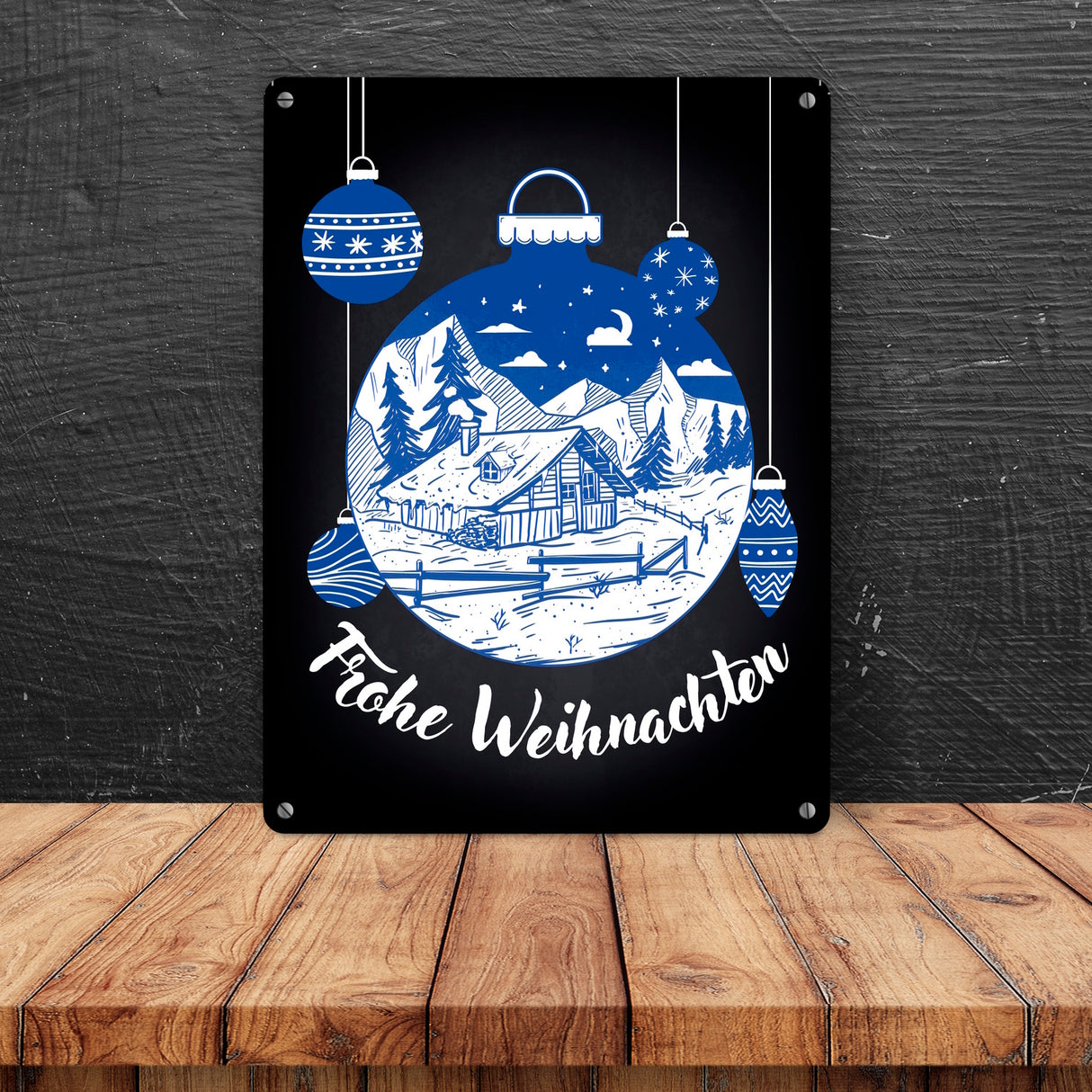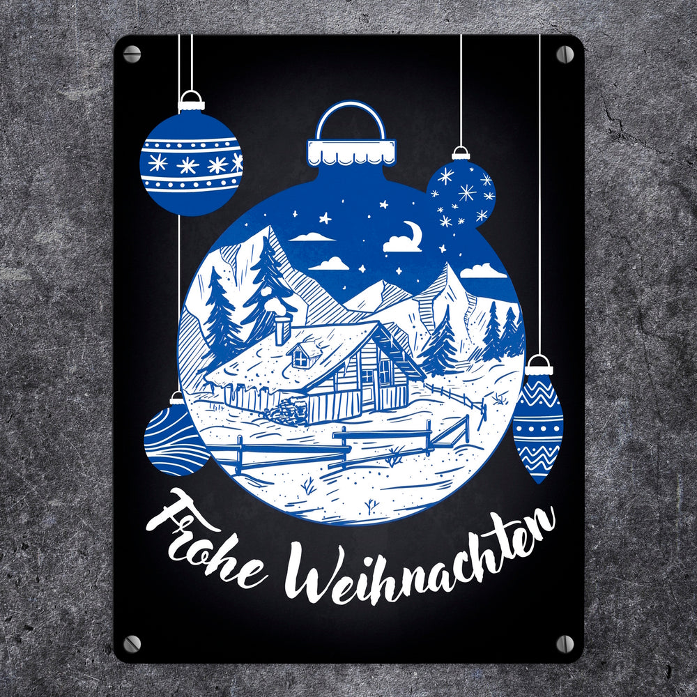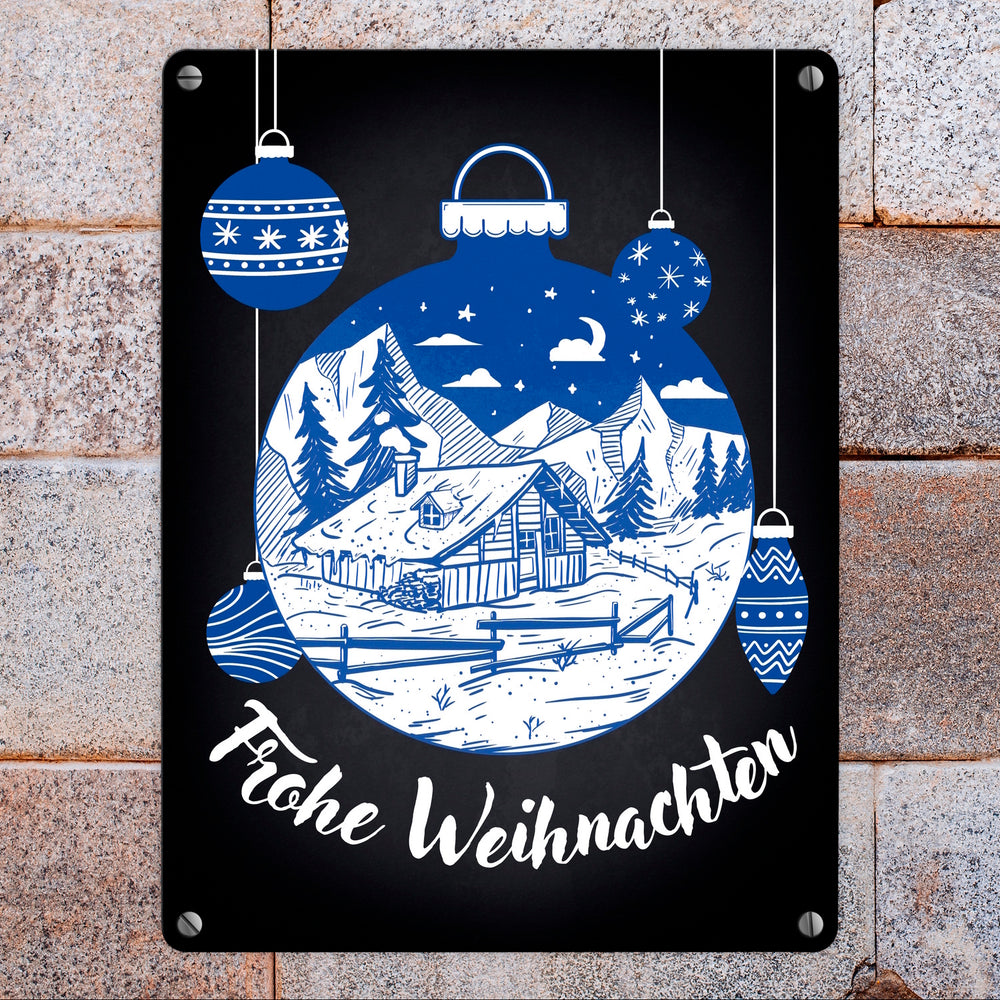 Frohe Weihnachten Metallschild mit Weihnachtskugeln