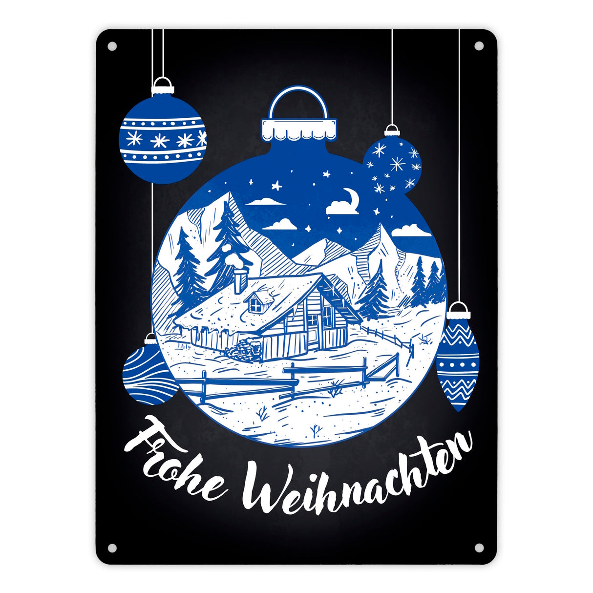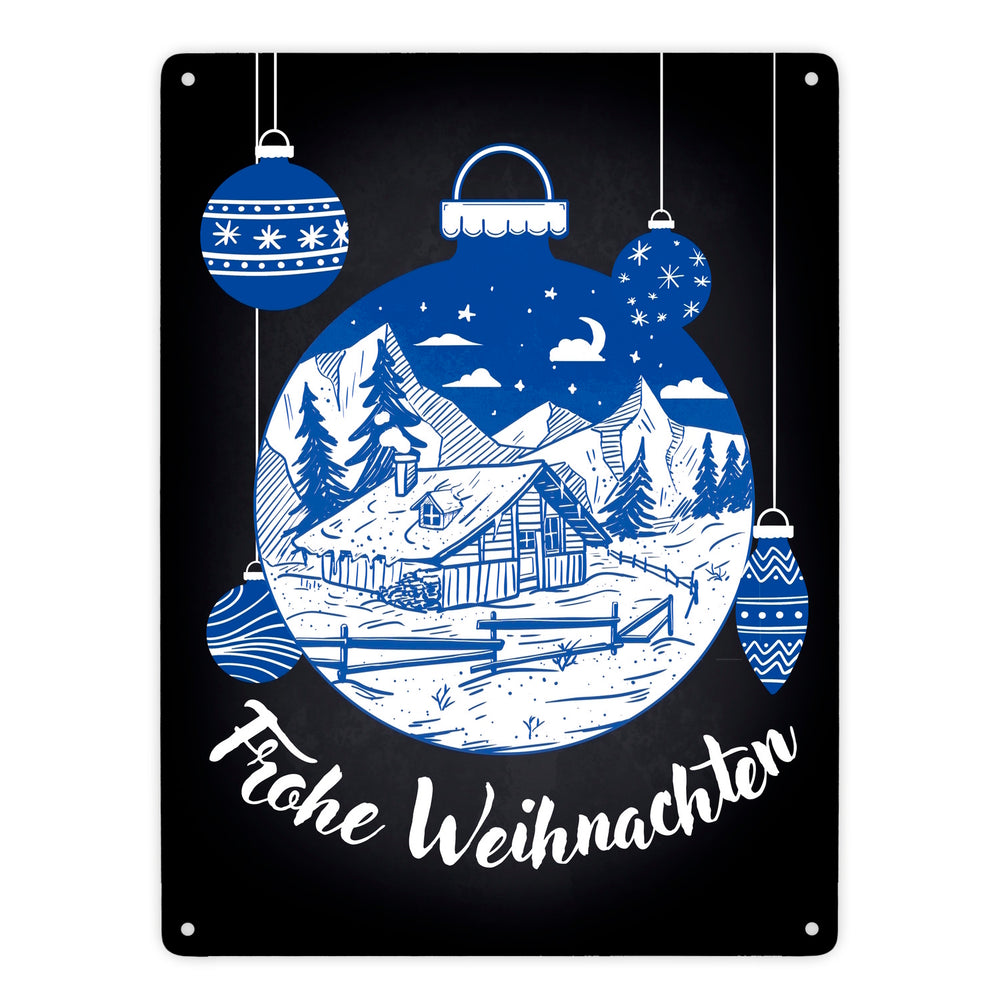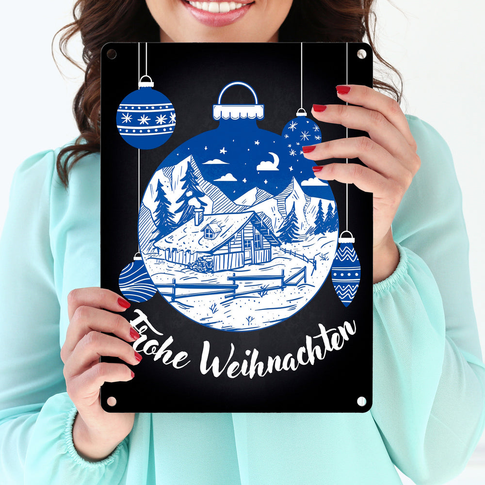 Frohe Weihnachten Metallschild mit Weihnachtskugeln