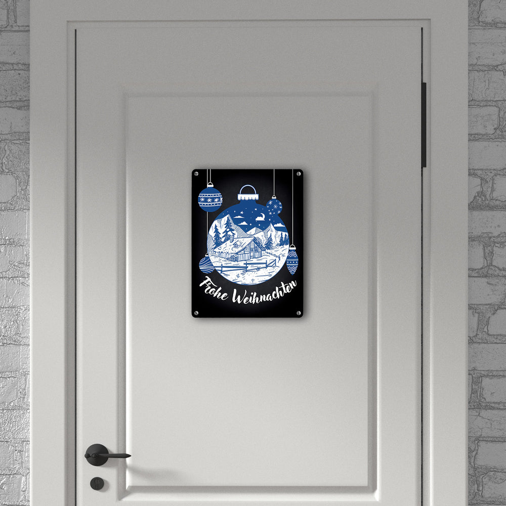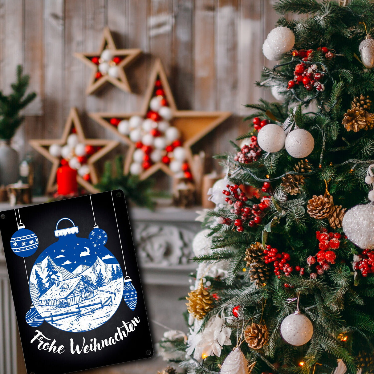 - Während der Weihnachtszeit dekorieren viele Menschen auch ihre Häuser und Wohnungen mit festlichem Weihnachtsschmuck. Mit diesem schönen Metallschild kannst du deinen Nachbarn und Besuchern an der Tür eine frohe Weihnacht wünschen.