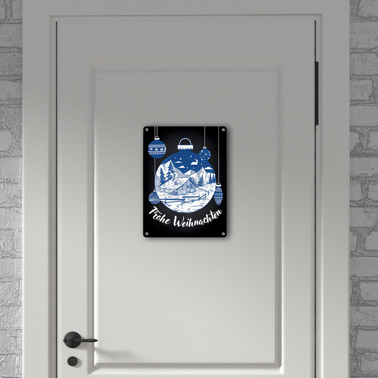 Während der Weihnachtszeit dekorieren viele Menschen auch ihre Häuser und Wohnungen mit festlichem Weihnachtsschmuck. Mit diesem schönen Metallschild kannst du deinen Nachbarn und Besuchern an der Tür eine frohe Weihnacht wünschen. Hinweise: Material: Aluminium / Dicke: 0,5 mm