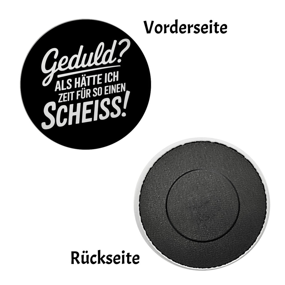 - 1x Geduld? Keine Zeit für sowas - Humorvoller Spruch Magnet in der gewählten Ausführung