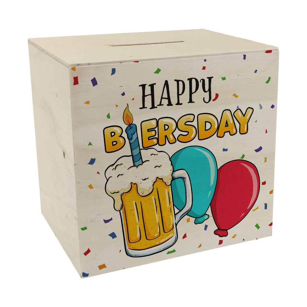 - 1x Happy Biersday Spardose mit Bier und Ballons in der gewählten Ausführung