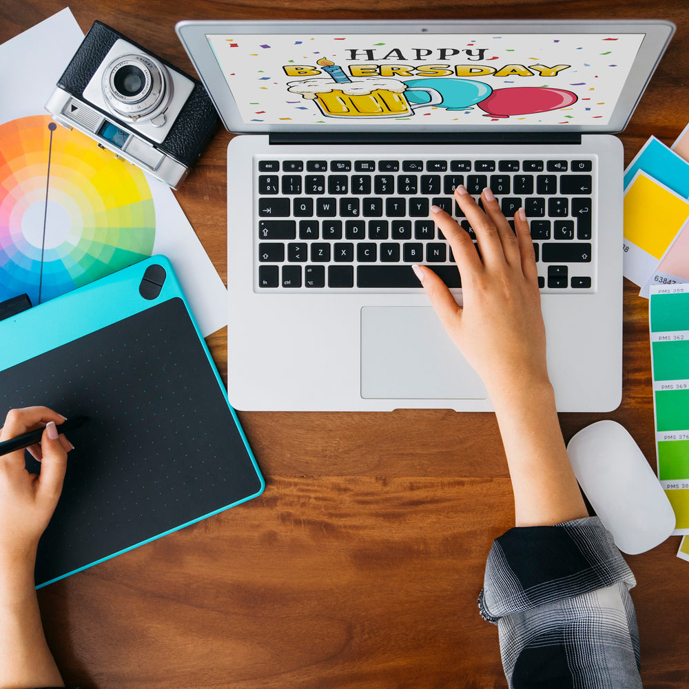 Happy Biersday Kaffeebecher mit Bier und Ballons