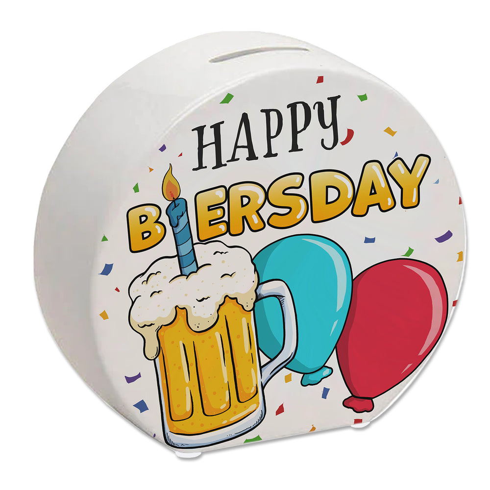 Happy Biersday Spardose mit Bier und Ballons - Keramik ist auf Lager und wird versandt, sobald es wieder verfügbar ist