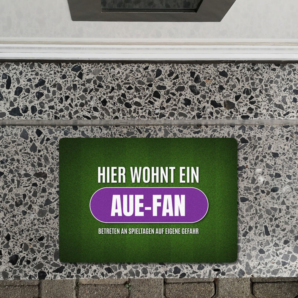 Hier wohnt ein Aue-Fan Fußmatte ohne Rand mit Rasen Motiv