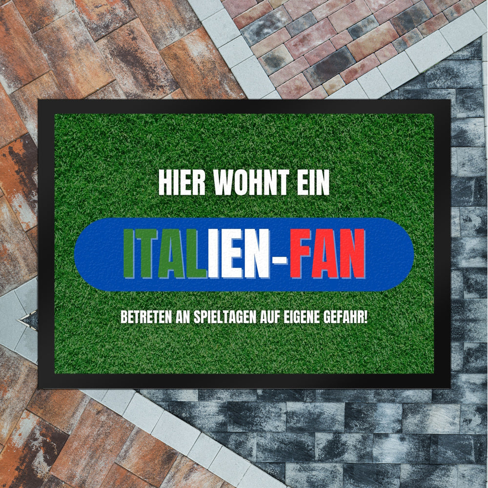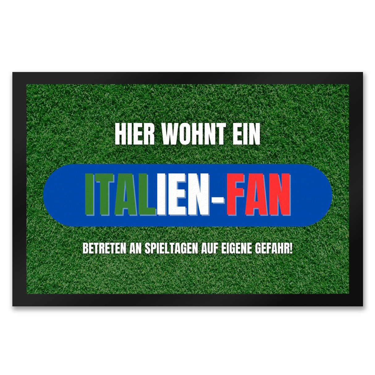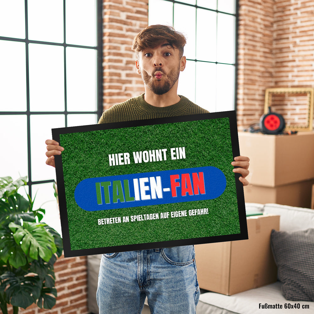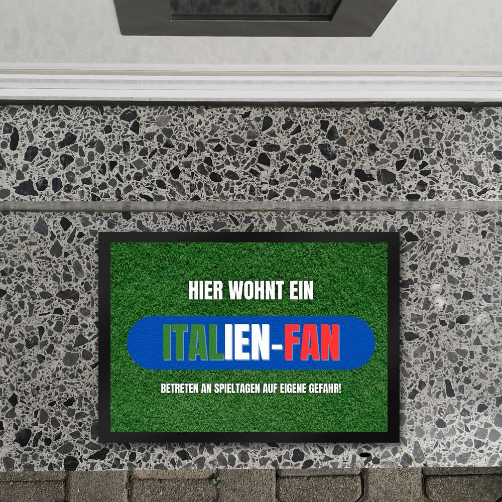 Hier wohnt ein Italien-Fan Fußmatte in 35x50 cm ohne Rand mit Spruch Betreten auf eigene Gefahr