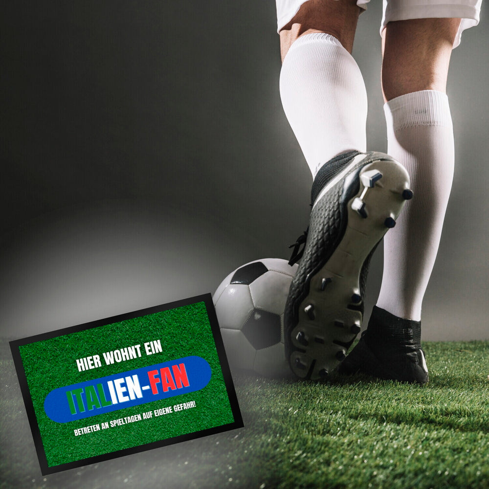 - Liebst du Italien und Fußball gleichermaßen? Dann ist diese Fußmatte genau das Richtige für dich! Sie zeigt einen saftig-grünen Fußballrasen aus einem Stadion und lässt jeden Besucher wissen: Hier wohnt ein echter Italien-Fan!