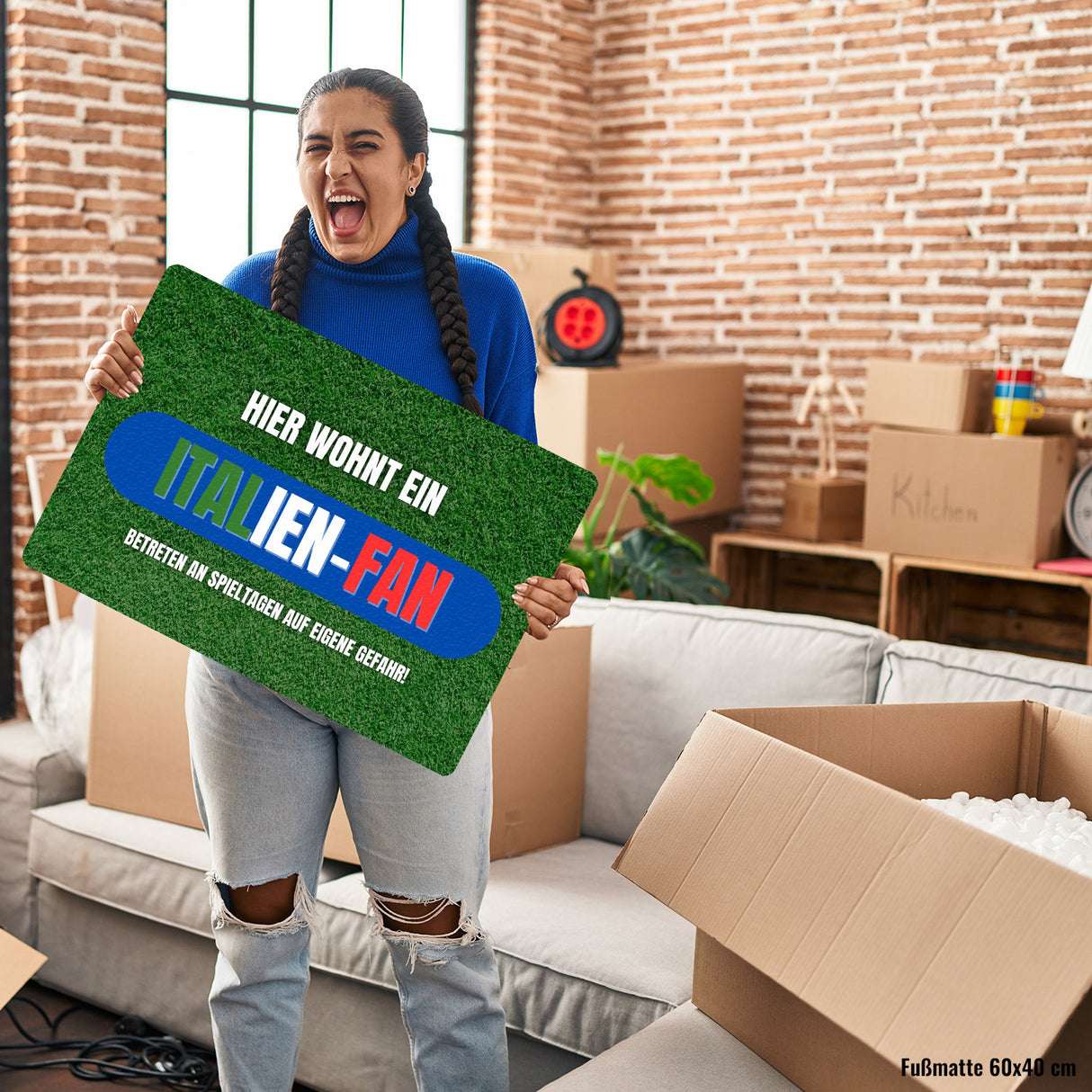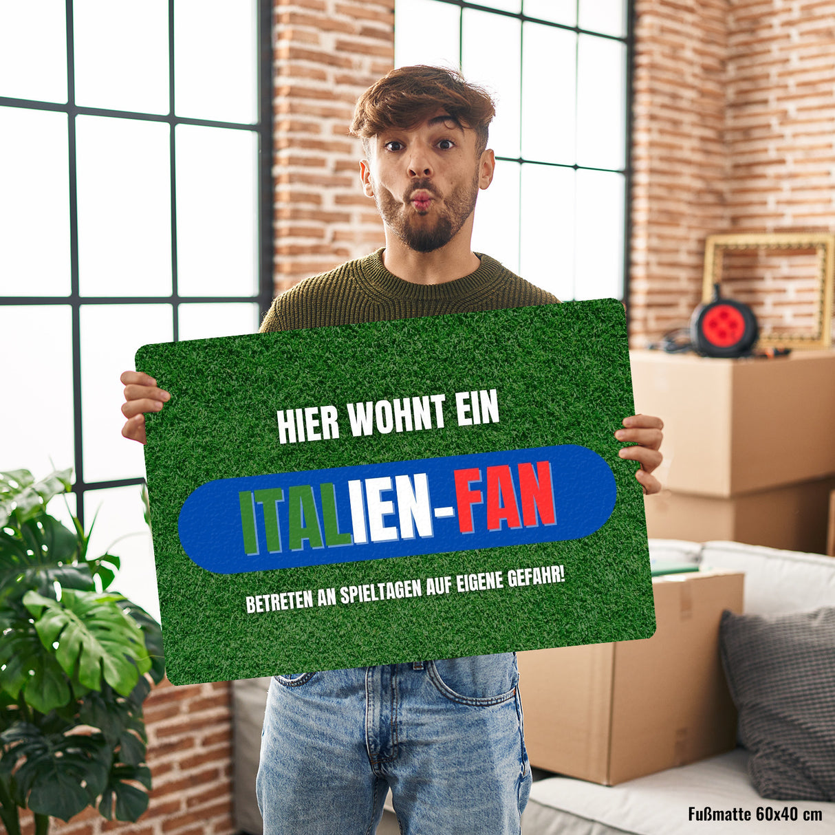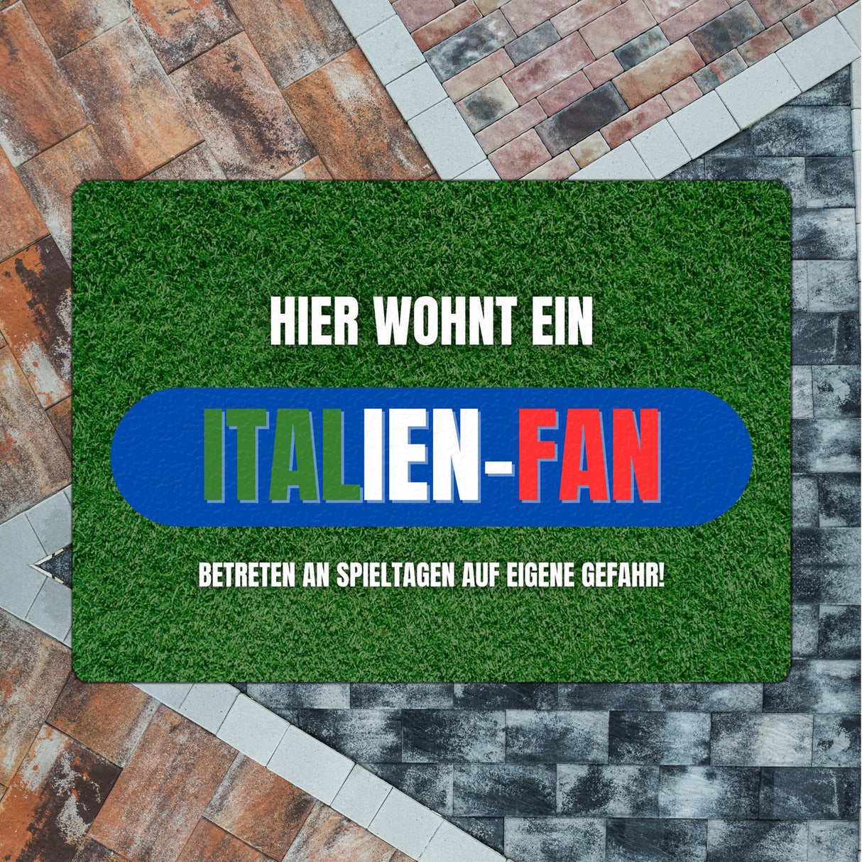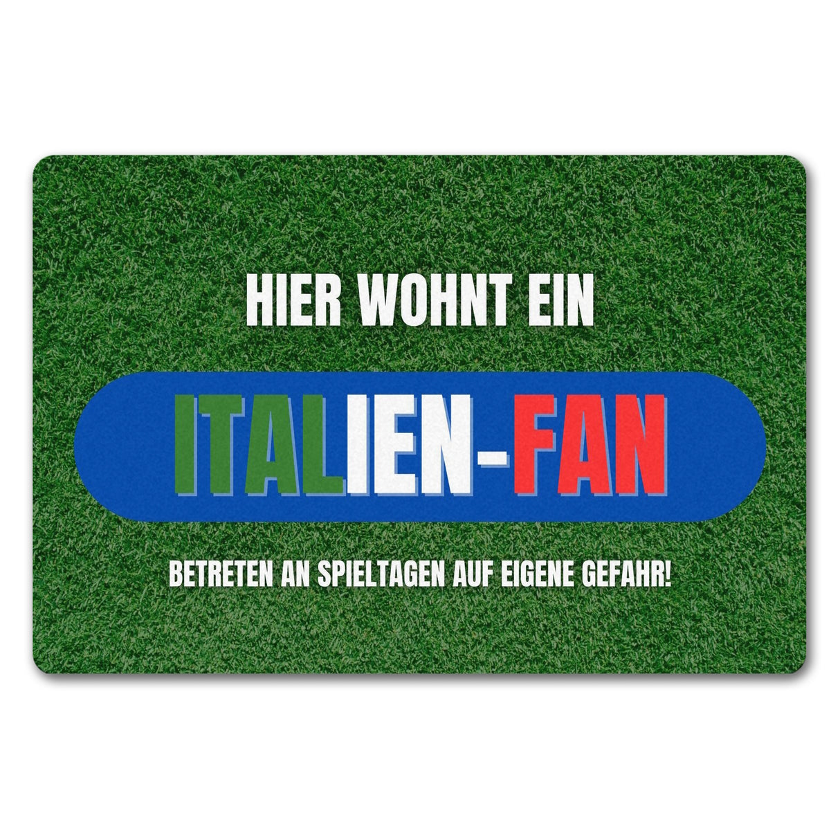 - Liebst du Italien und Fußball gleichermaßen? Dann ist diese Fußmatte genau das Richtige für dich! Sie zeigt einen saftig-grünen Fußballrasen aus einem Stadion und lässt jeden Besucher wissen: Hier wohnt ein echter Italien-Fan!