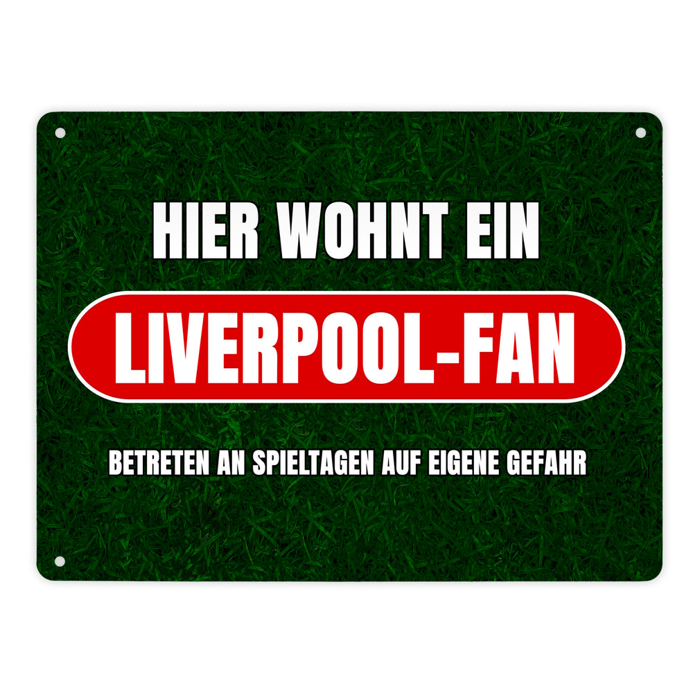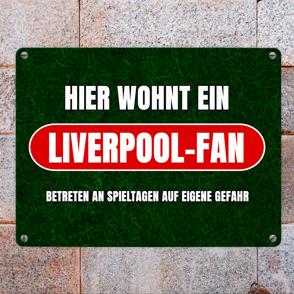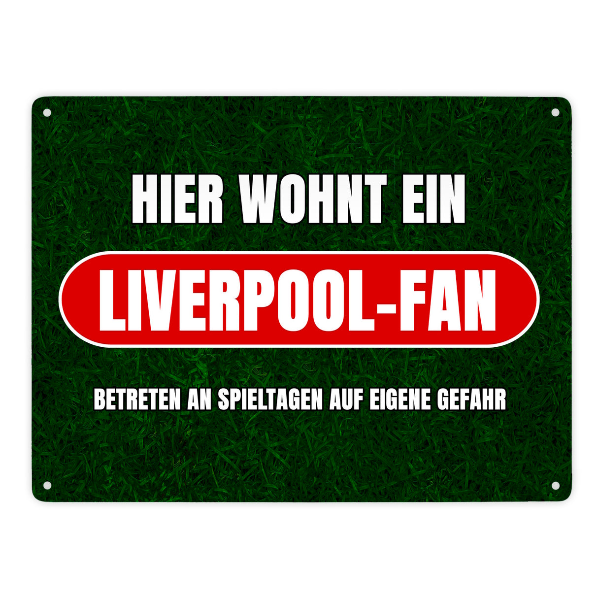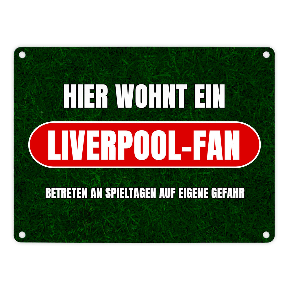 - 1x Hier wohnt ein Liverpool-Fan Metallschild in 15x20 cm mit Rasenmotiv in der gewählten Größe
