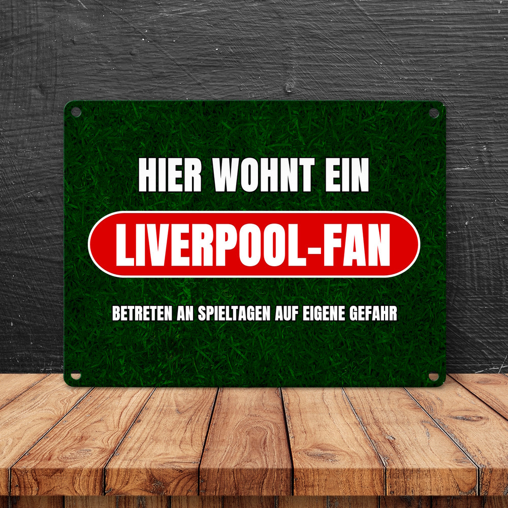 - Dein Herz schlägt für Liverpool? Dann kannst du als richtiger Liverpool-Fan nun zeigen, dass an Spieltagen für dich nur eins zählt: Der Sport!Dieses tolle Metallschild ist aussagekräftig und hat ein dunkelgrünes Rasenmotiv.