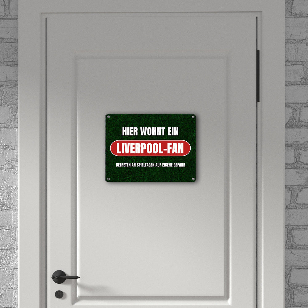 Hier wohnt ein Liverpool-Fan Metallschild in 15x20 cm mit Rasenmotiv