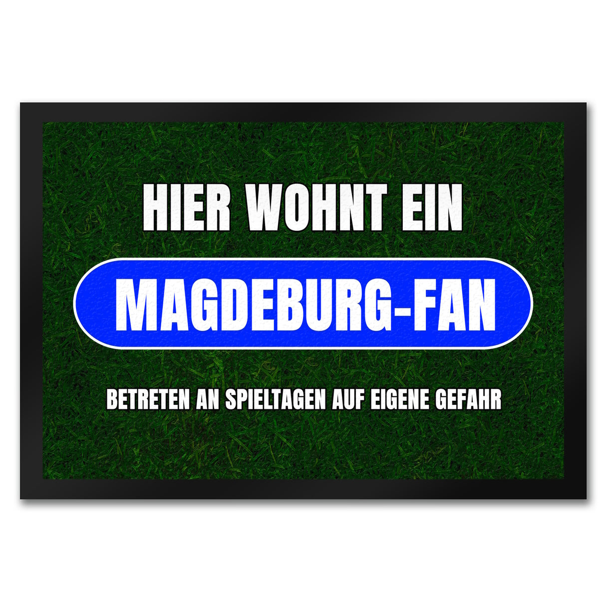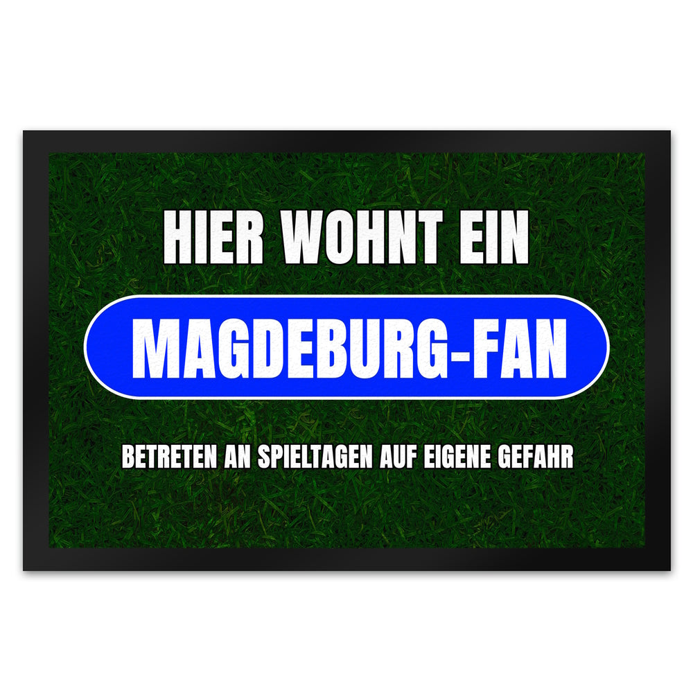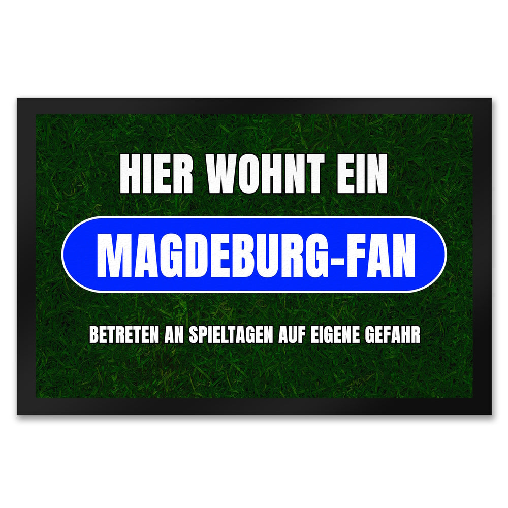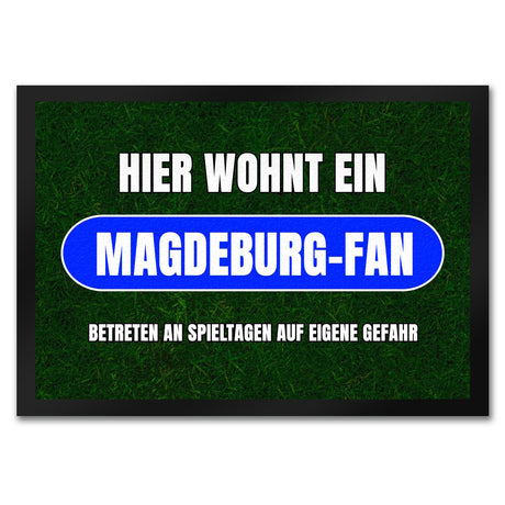 Hier wohnt ein Magdeburg-Fan Fußmatte in 35x50 cm mit Rasenmotiv