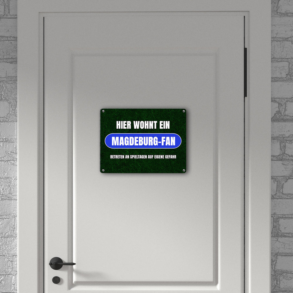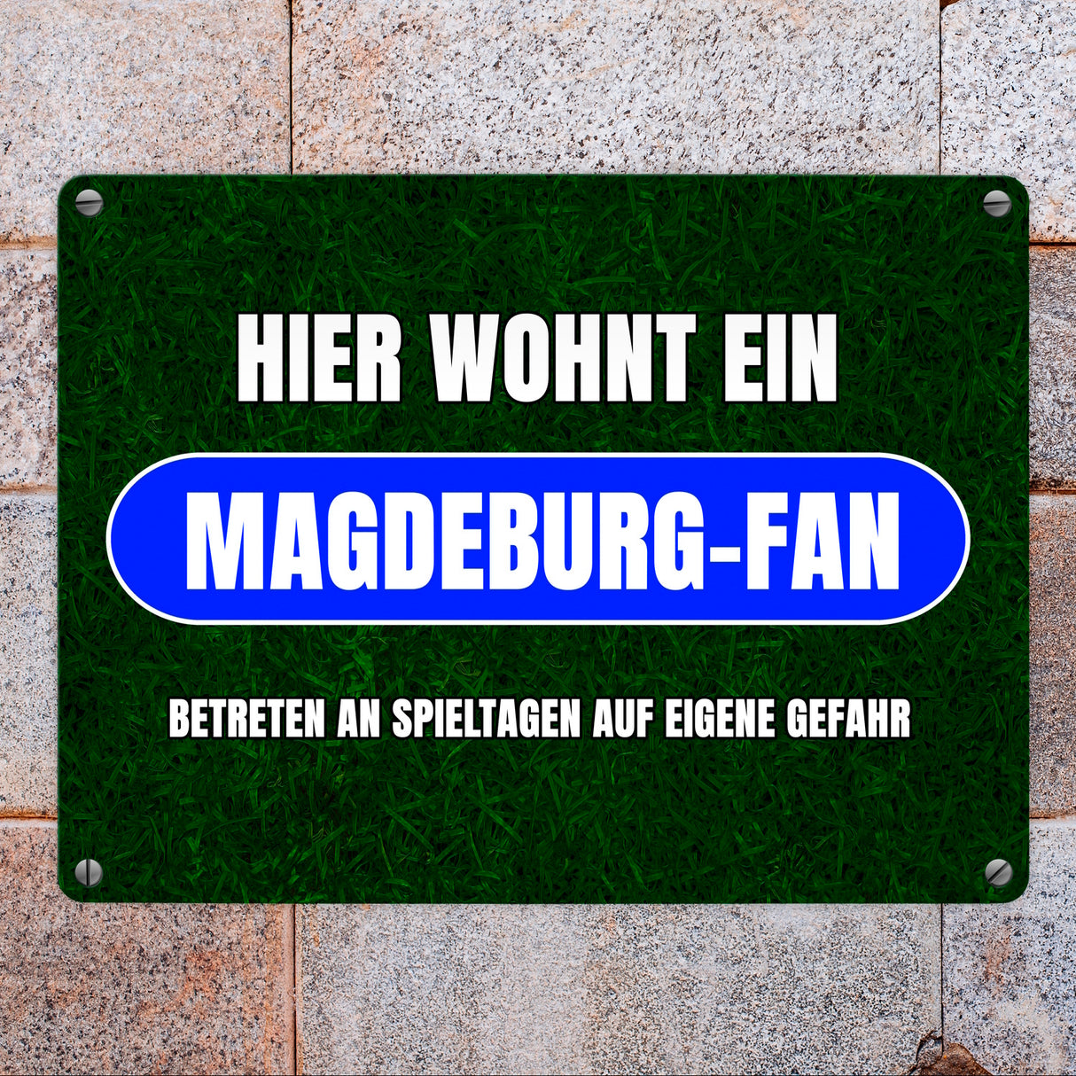 Hier wohnt ein Magdeburg-Fan Metallschild in 15x20 cm mit Rasenmotiv