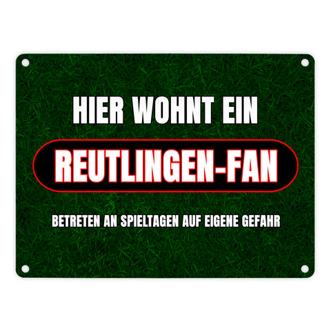 Hier wohnt ein Reutlingen-Fan Metallschild in 15x20 cm mit Rasenmotiv