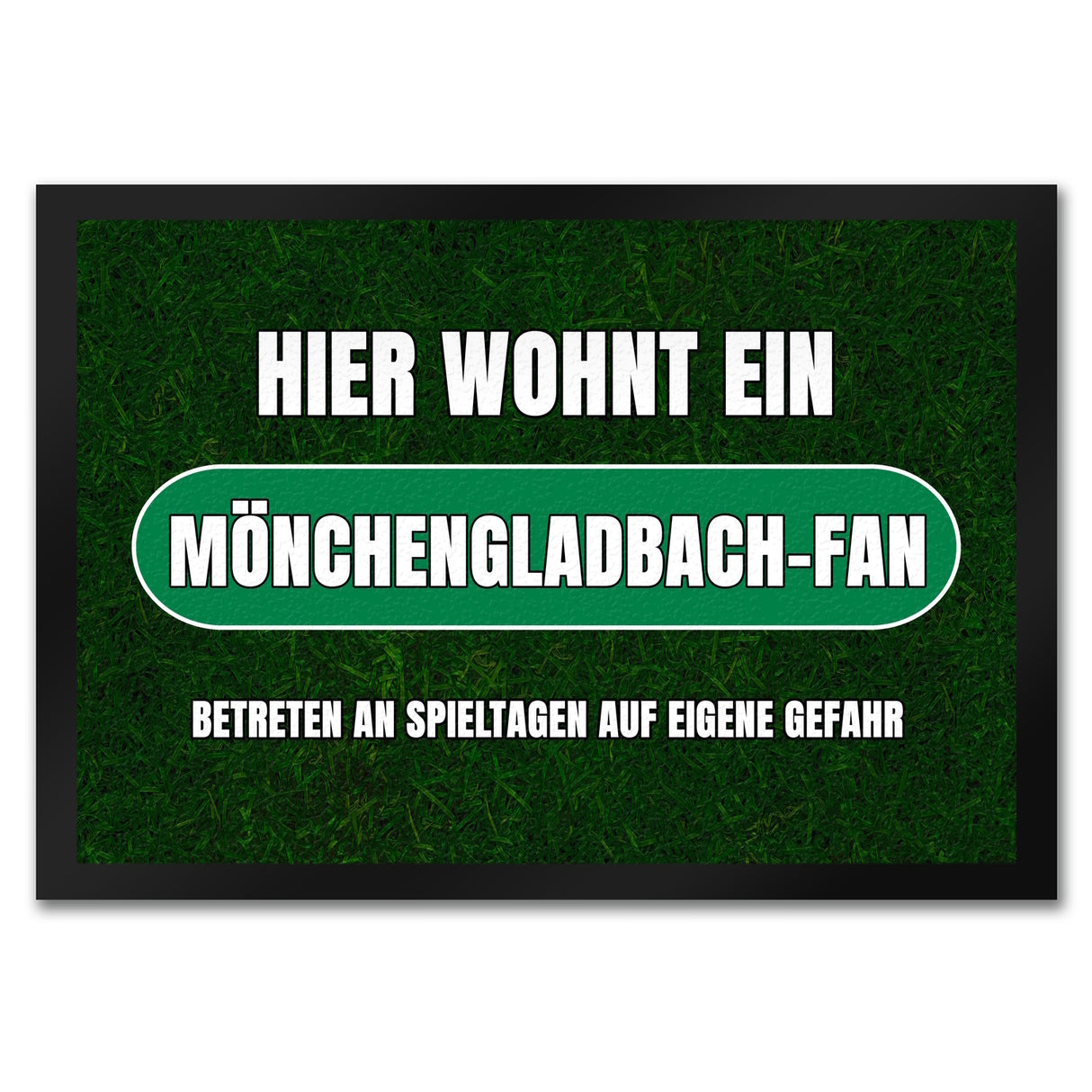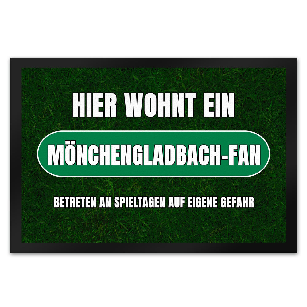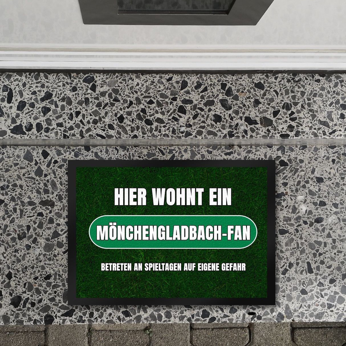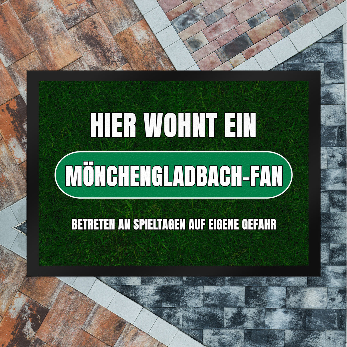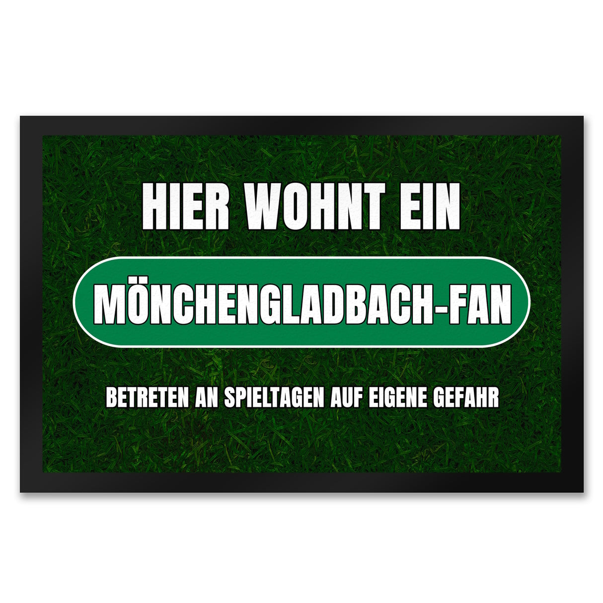 - 1x Hier wohnt ein Mönchengladbach-Fan Fußmatte mit Rasenmotiv in der gewählten Größe