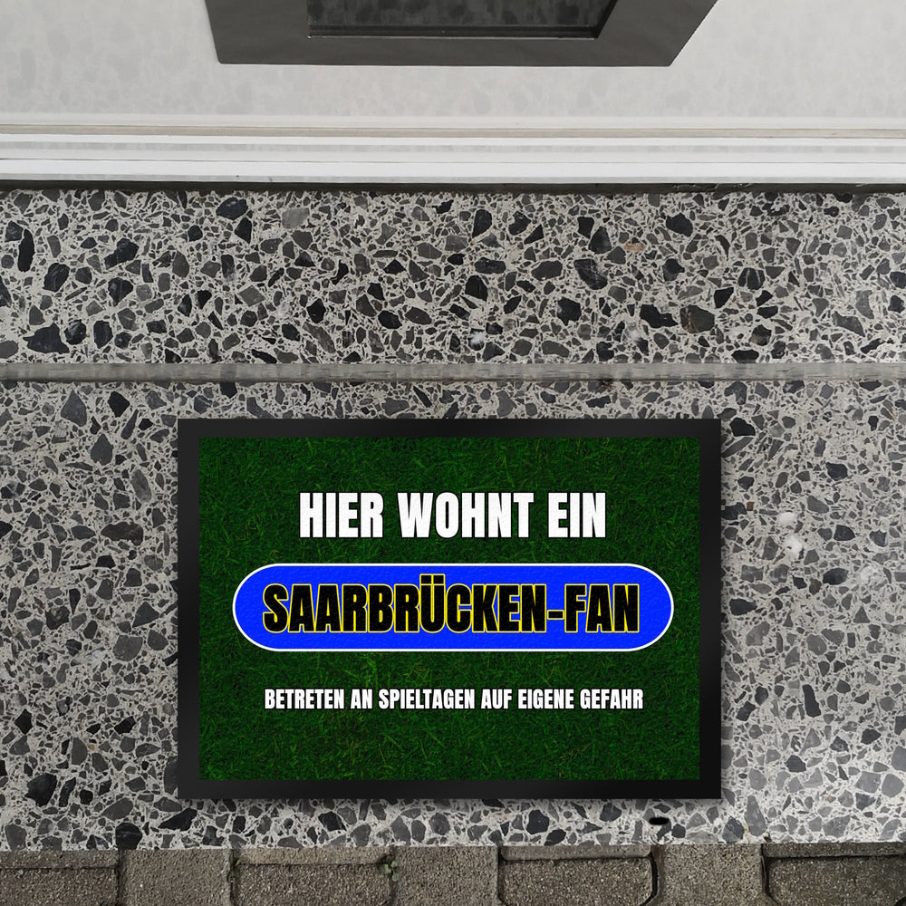 Hier wohnt ein Saarbrücken-Fan Fußmatte in 35x50 cm mit Rasenmotiv