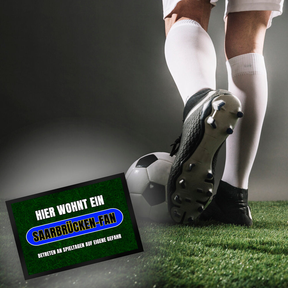 • 1x Hier wohnt ein Saarbrücken-Fan Fußmatte in 35x50 cm mit Rasenmotiv in der gewählten Größe