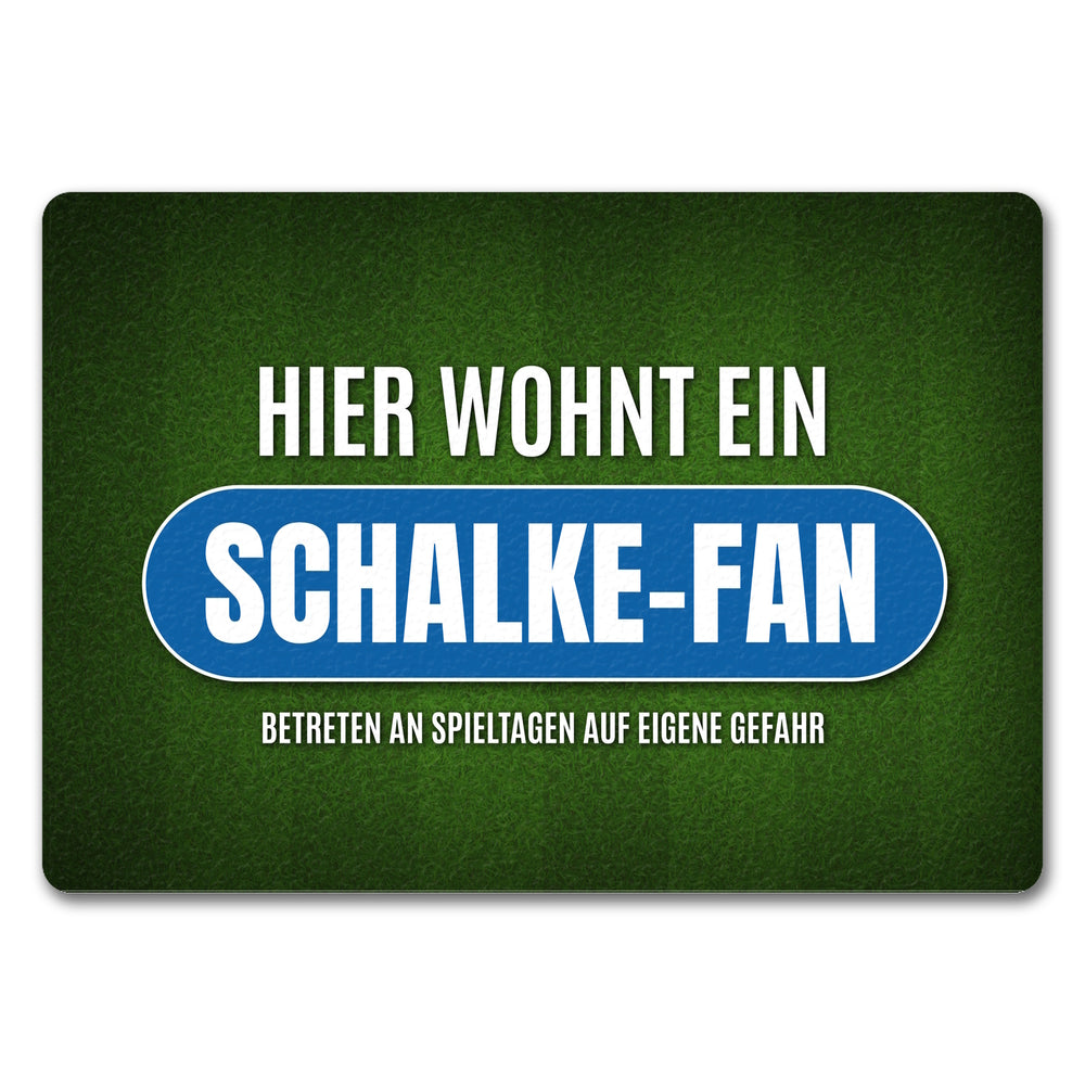 Hier wohnt ein Schalke-Fan Fußmatte mit Rasen Motiv