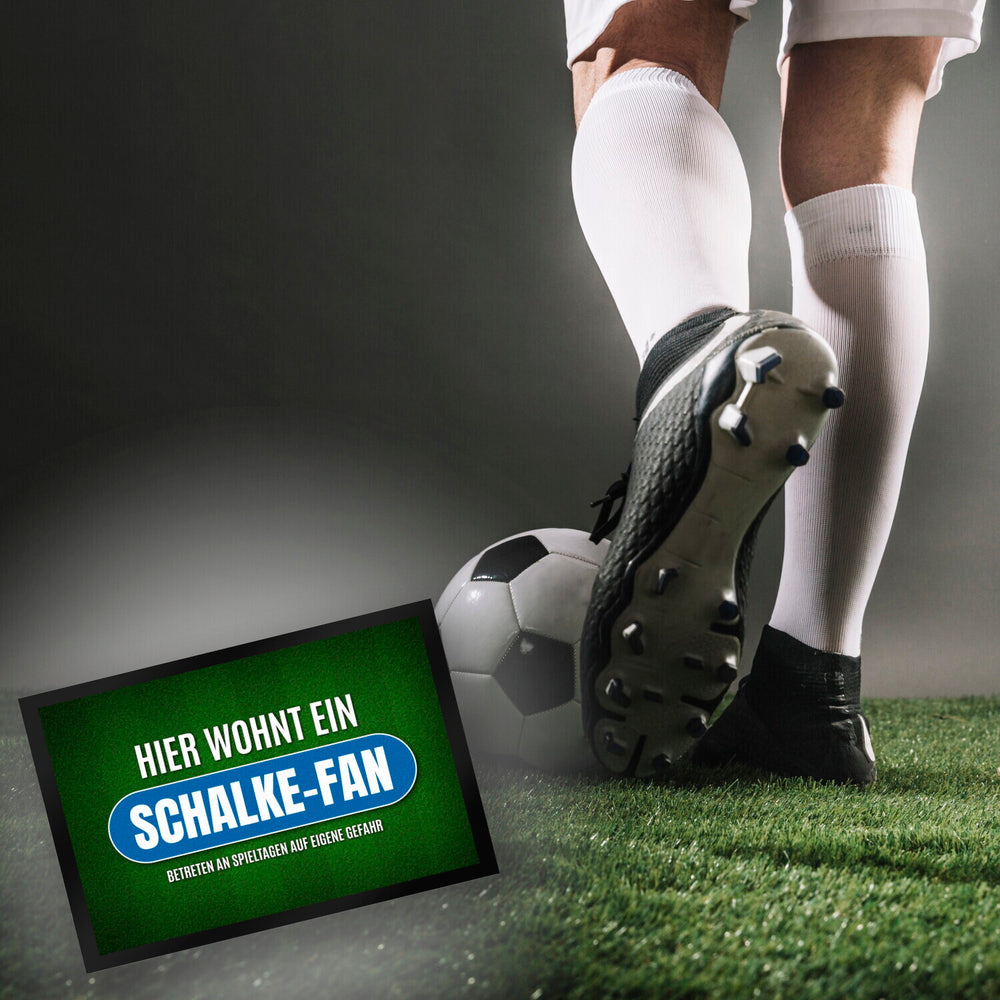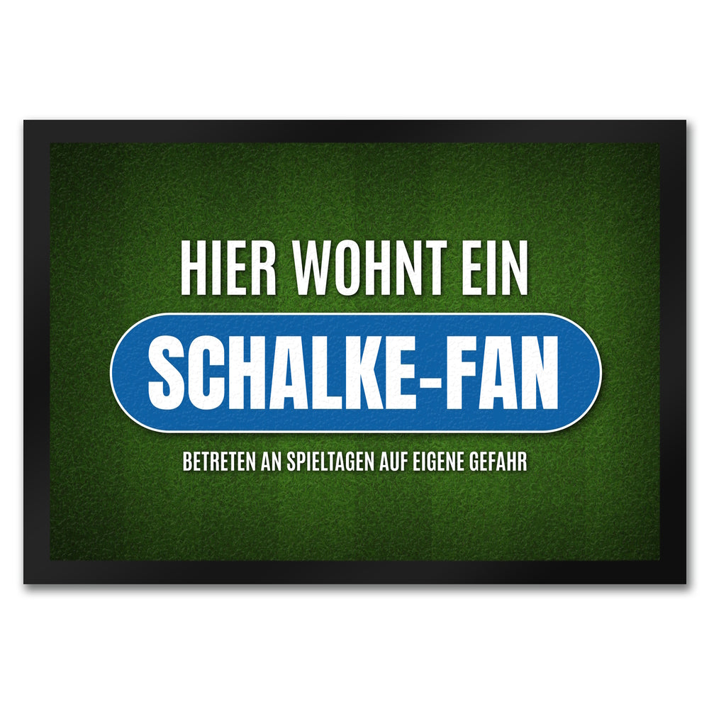 - 1x Hier wohnt ein Schalke-Fan Fußmatte mit Rasen Motiv in der gewählten Größe