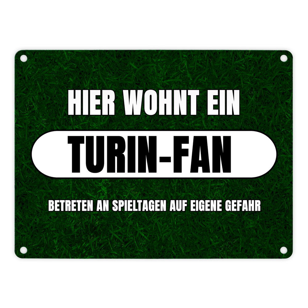Hier wohnt ein Turin-Fan Metallschild in 15x20 cm mit Rasenmotiv